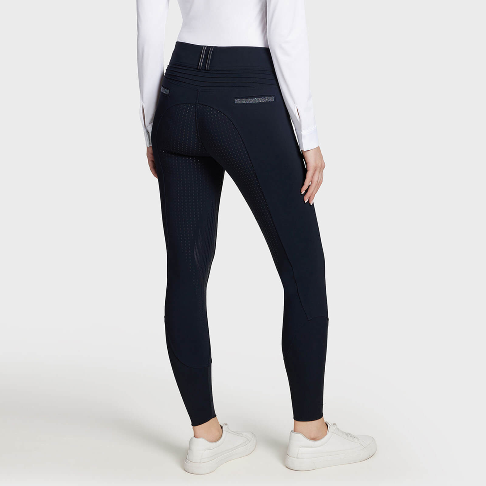 Die Clara FS 2024 besticht durch ihr elegantes Design in den Farben Navy und Weiß. Raffinierte Details wie die Swarovski-Kristallverzierungen und der mittlere Bund sorgen nicht nur für einen stilvollen Auftritt, sondern bieten auch optimalen Sitzkomfort. Die Full-Grip-Technologie gewährleistet Stabilität im Sattel und unterstützt dich bei jeder Bewegung.