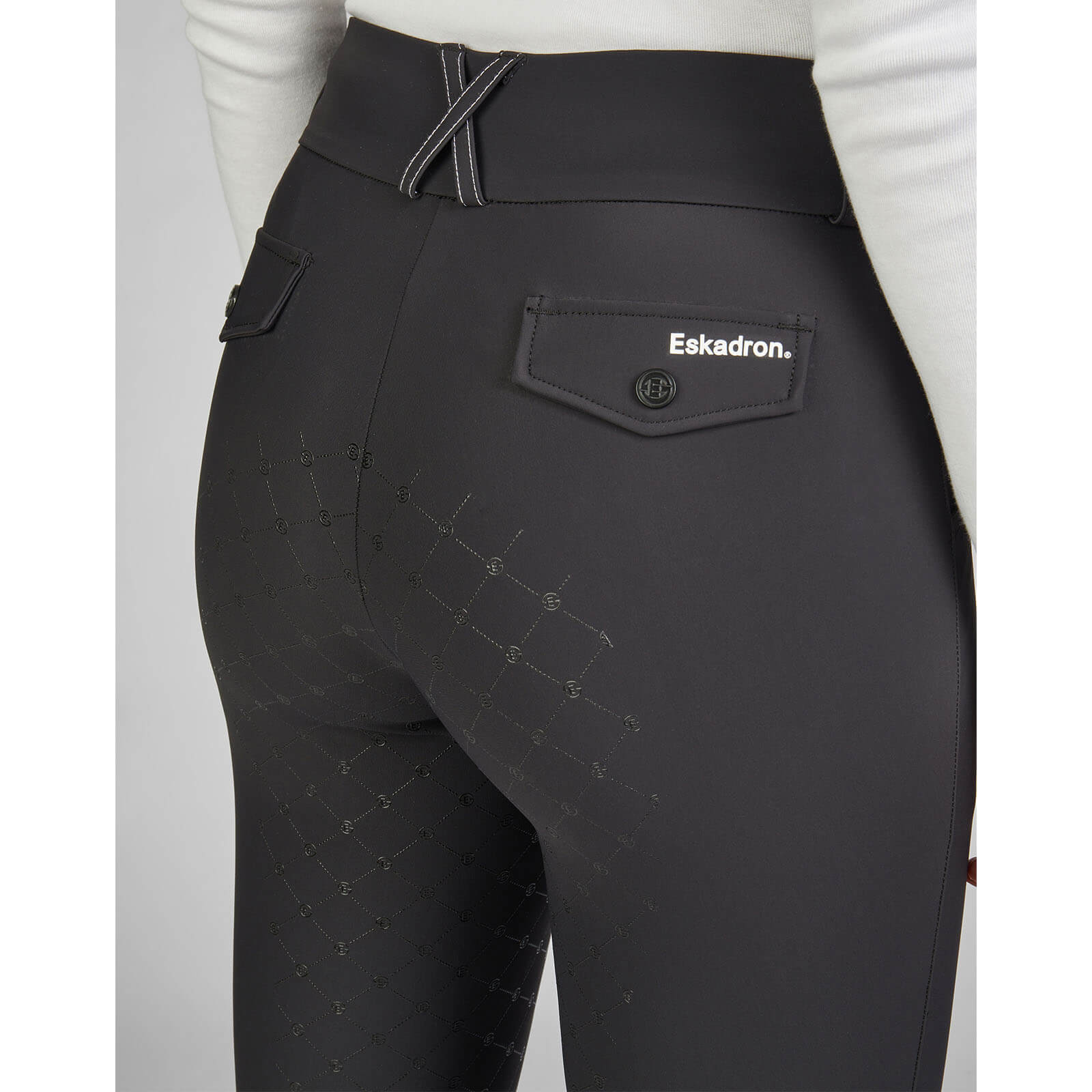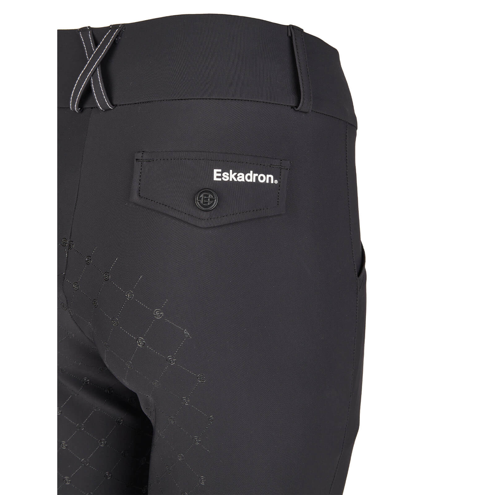 Die Reithose besticht durch ihr modernes Design und die hochwertige Verarbeitung. Der breite und hohe Bund mit Eskadron-Metall-Plakette verleiht nicht nur Eleganz, sondern auch eine perfekte Passform. Die Farben Schwarz und Weiß ergänzen dein Reitoutfit stilvoll und sorgen für einen professionellen Auftritt im Sattel.