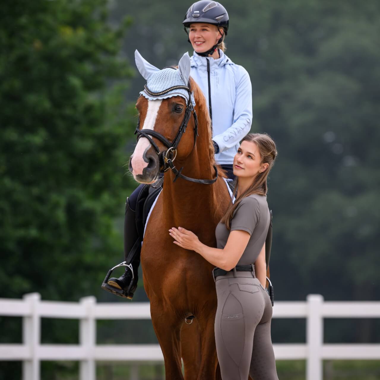 Die Cavalcandera FS 2025 beeindruckt durch ihre moderne Optik in der Farbe Mud Taupe, die sich vielseitig kombinieren lässt. Elegante Strassapplikationen und eine raffinierte Rückenpasse verleihen der Reithose eine luxuriöse Note. Der breite, elastische Bund mit Gürtelschlaufen sorgt nicht nur für einen perfekten Sitz, sondern auch für zusätzlichen Komfort und Stil.