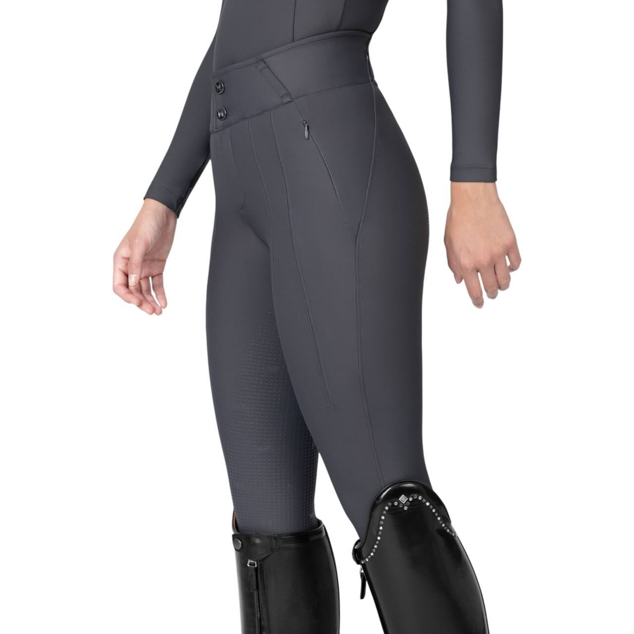 Diese Reithose passt sich jeder Bewegung an und unterstützt dich optimal im Sattel. Dank des ergonomischen Schnitts erlebst du volle Flexibilität ohne Kompromisse bei der Stabilität. Die elegant platzierten Abnäher sorgen für eine feminine Silhouette und einen modernen Look. Die hohe Taille mit breitem Bund bietet dir ganztägigen Tragekomfort. Zwei großzügige, unsichtbar eingearbeitete Reißverschlusstaschen sichern dein Smartphone oder kleine Essentials. Durch den Verzicht auf Nähte an den Innenseiten gibt es keine Druckstellen im Kontaktbereich zum Sattel.