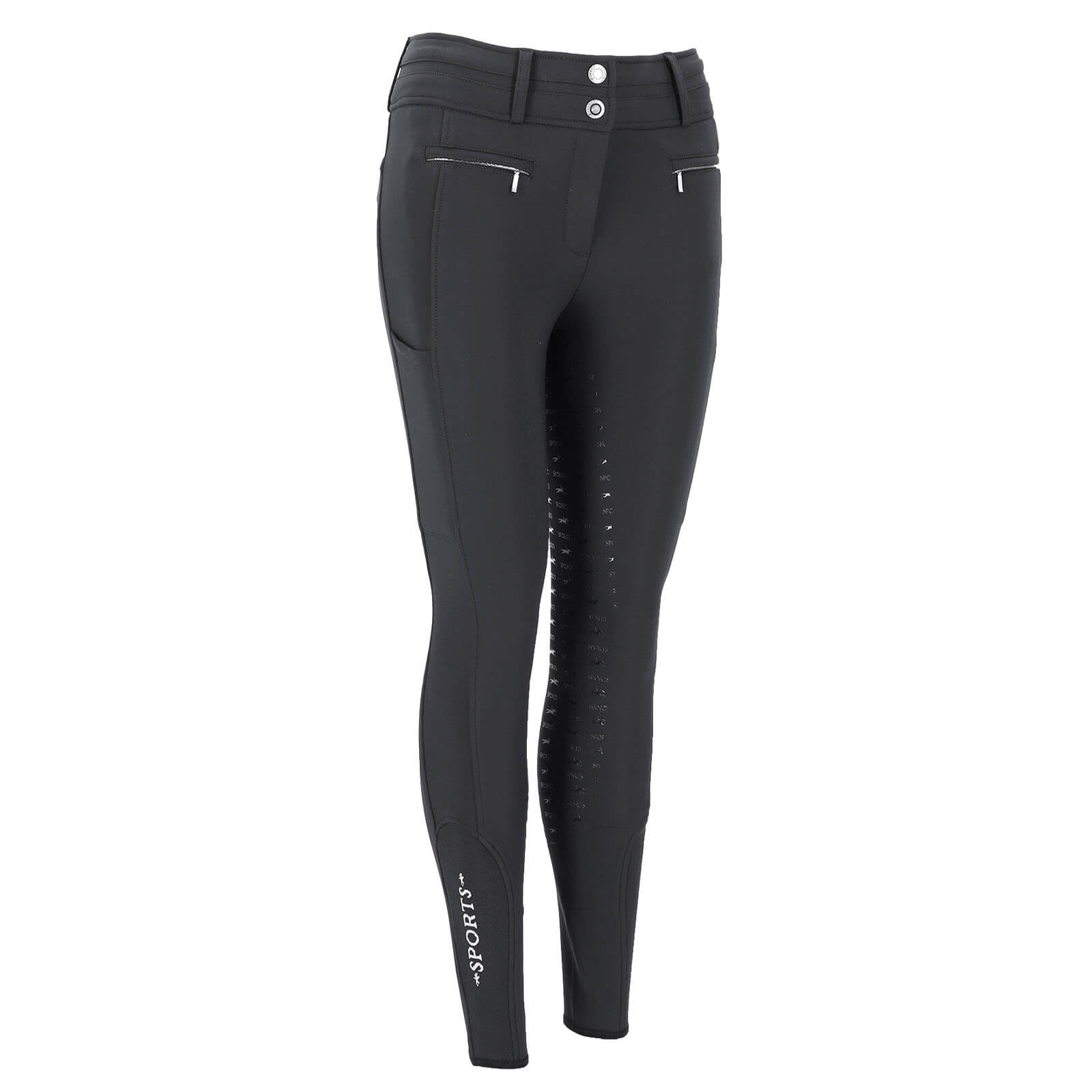 Ausgestattet mit einem Vollbesatz aus Silikon-Print, bietet die Reithose optimalen Grip im Sattel und verbessert so dein Reiterlebnis. Die elastischen Stulpen mit Logo-Jacquard am Saum sorgen für eine perfekte Passform und verhindern ein Hochrutschen der Hose, selbst bei intensiven Bewegungen.