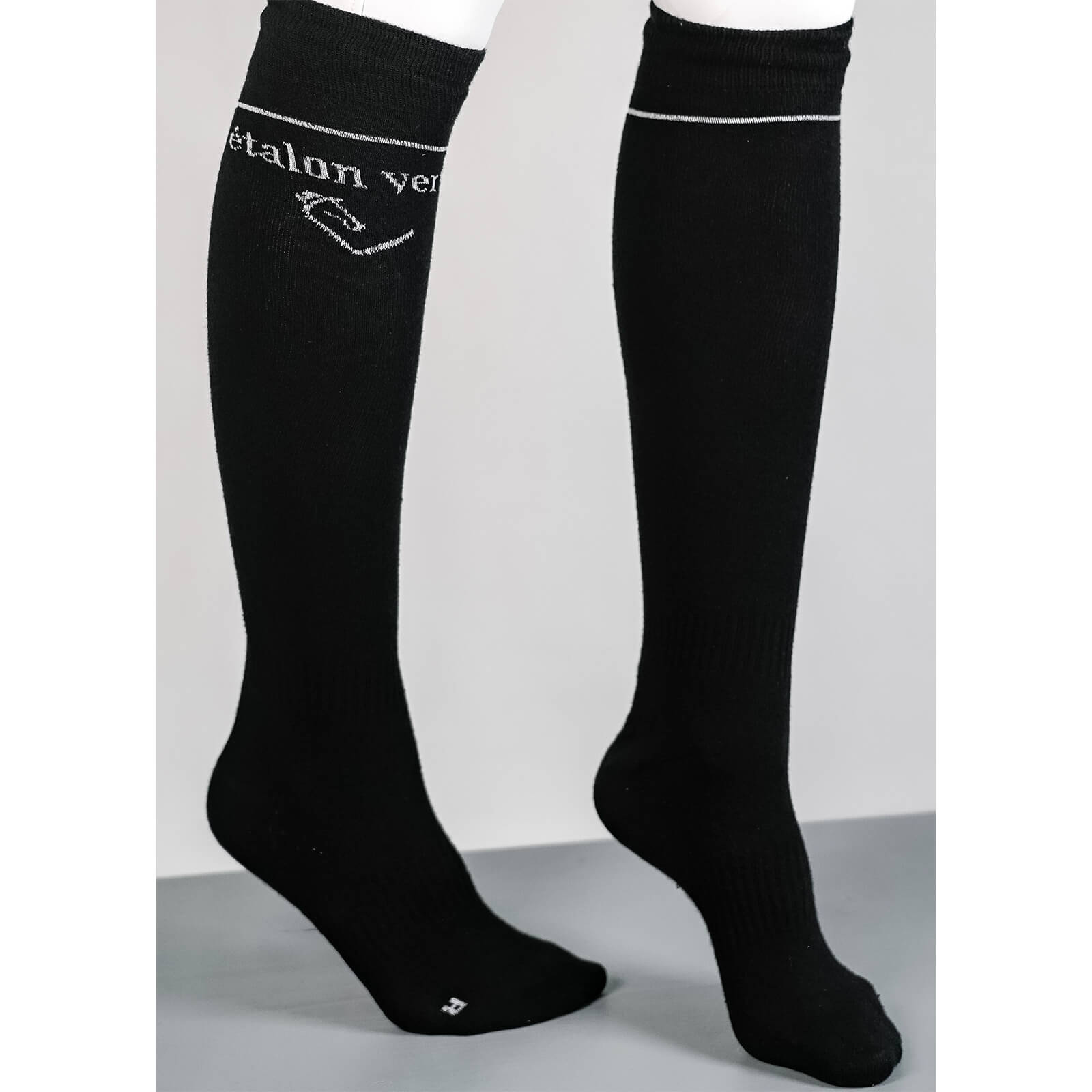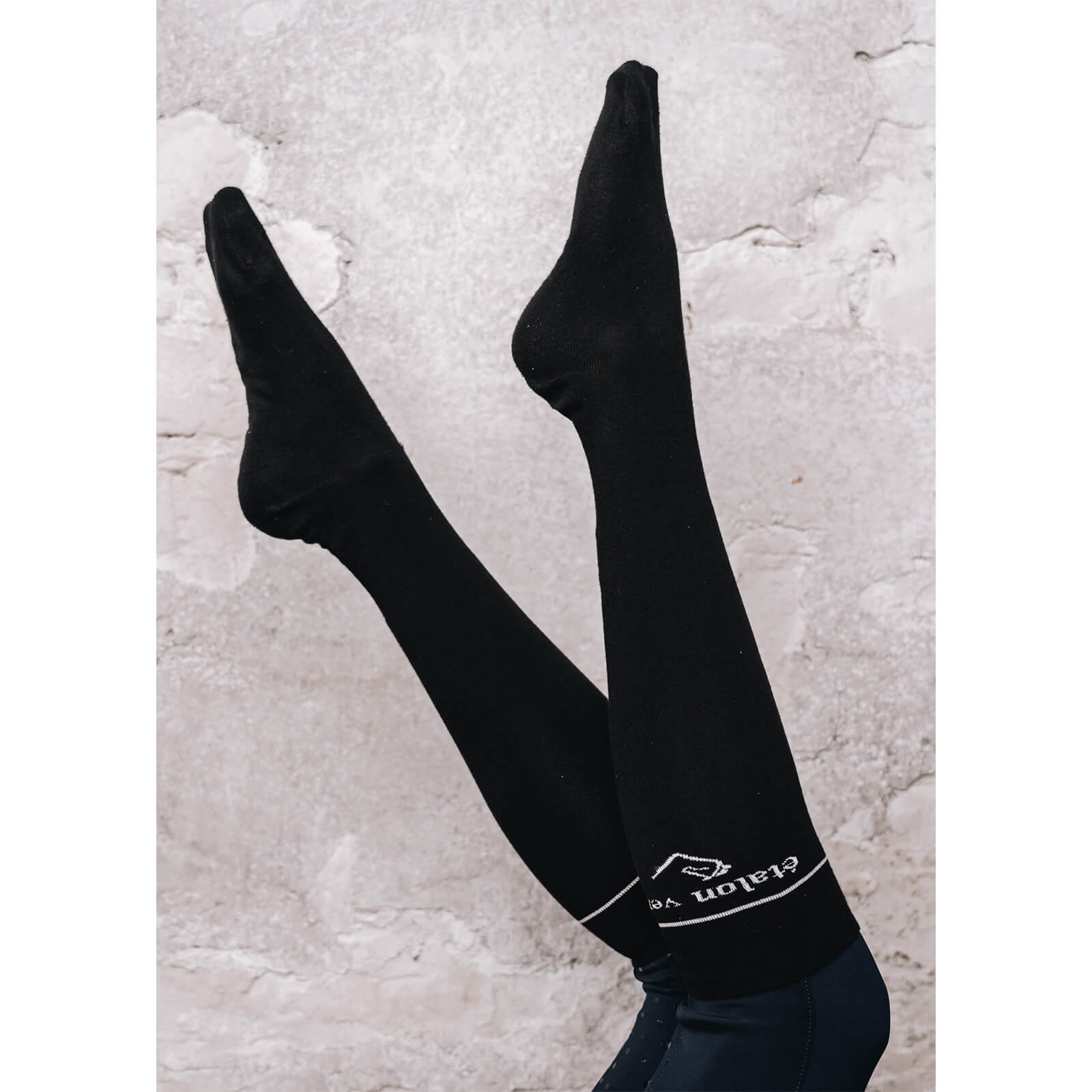 Die Kniestrümpfe in klassischem Schwarz überzeugen durch ihr schlichtes und elegantes Design. Die subtilen Logo-Stickereien von etalon vert verleihen ihnen einen edlen Look, der sich perfekt in jede Turniergarderobe einfügt. Dank ihres Designs bieten sie nicht nur optische Eleganz, sondern auch praktische Vorteile wie eine verbesserte Passform.