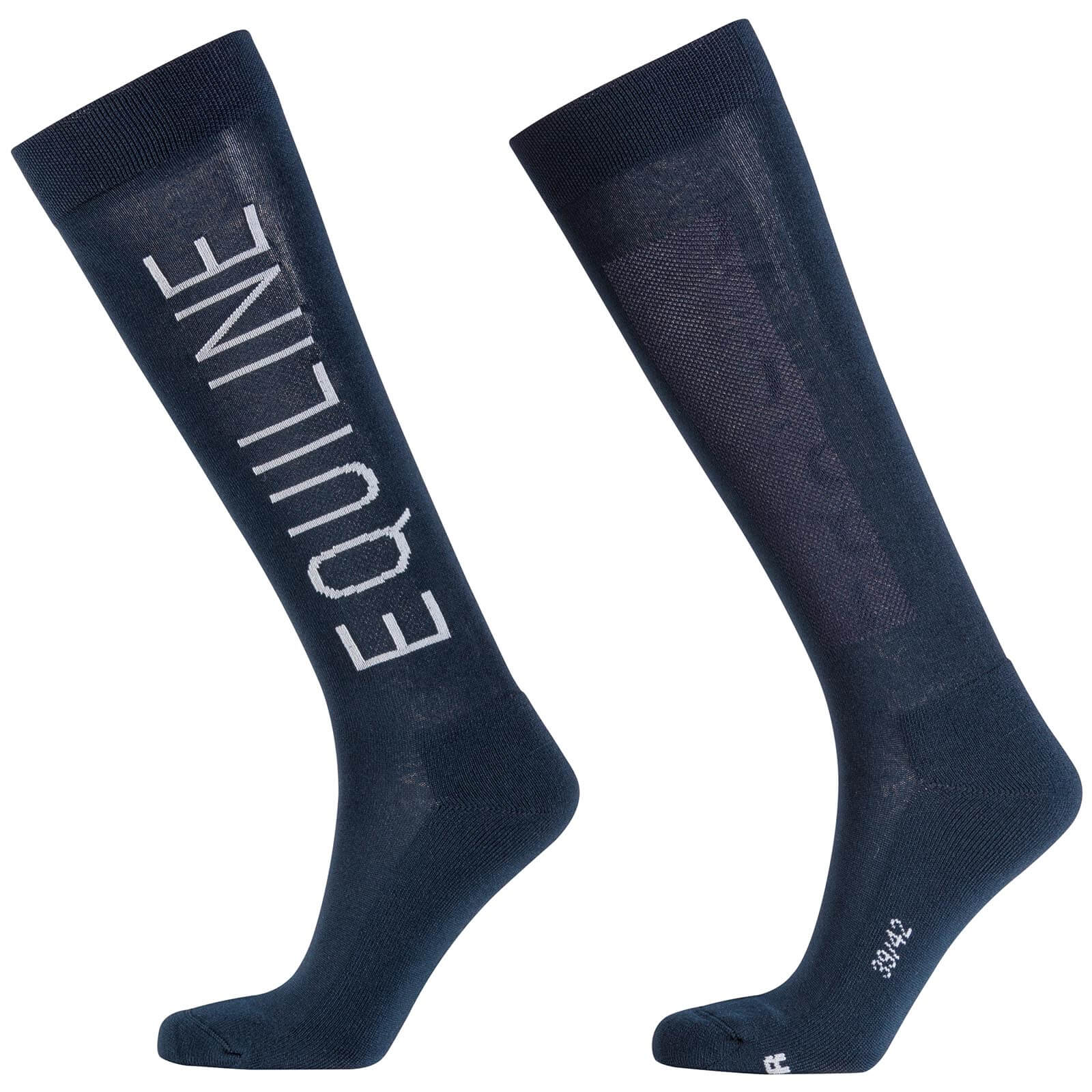 Die Reitsocken Elivie setzen mit ihrem auffälligen Equiline-Logo in Kontrastfarbe stilvolle Akzente. Das Unisex-Design passt sich jedem Outfit an und sorgt für einen eleganten Look, egal ob im Training oder auf Turnieren. Dank der Farbwahl in Blau sind sie vielseitig kombinierbar und dabei immer ein Hingucker.