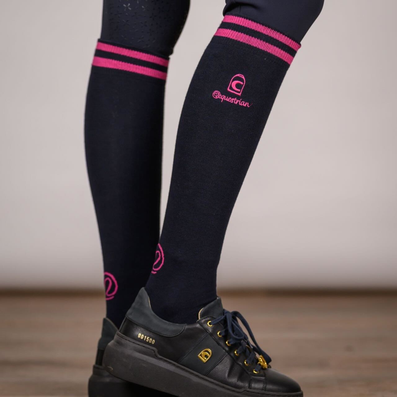 Oben am Schaft setzen zwei Kontraststreifen und ein eingestrickter Cavallo-Steigbügel markentypische Akzente. Im Fußbereich sorgen kleine eingestrickte Herzchen in Kontrastfarbe für einen charmanten Blickfang. Der elegante und funktionale Look macht den Strumpf zu einem unverzichtbaren Bestandteil deiner Reitausrüstung. Durch die dezente Farbgestaltung lässt er sich vielseitig kombinieren – ob mit Reithose, Chaps oder Stiefel. Die hochwertige Verarbeitung verspricht Langlebigkeit auch bei regelmäßigem Tragen und Waschen. Mit seinem ausgewogenen Mix aus Funktionalität und Design erfüllt dieser Strumpf höchste Ansprüche im Reitsport.