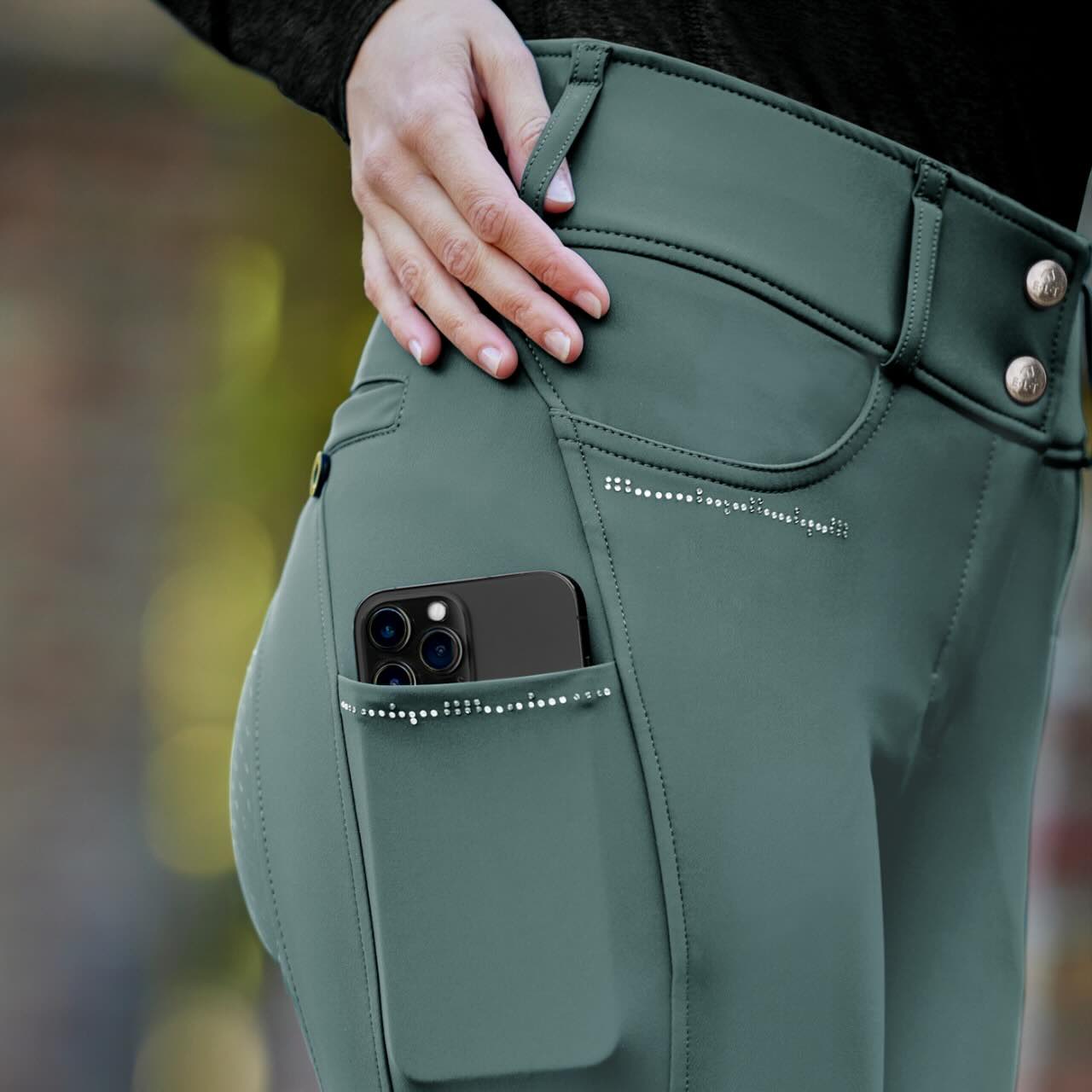 Die Mathilda Glam High Waist beeindruckt mit ihrem eleganten Look, der durch dekorative Strasssteinchen an der Handy-Einschubtasche veredelt wird. Die verschiedenen Farboptionen, von klassischem Schwarz bis hin zu lebhaftem Smaragd, lassen dich immer stilvoll erscheinen. Das Design ist nicht nur ein Hingucker, sondern bietet auch praktische Vorteile, wie den elastischen Beinabschluss, der für perfekten Sitz sorgt.