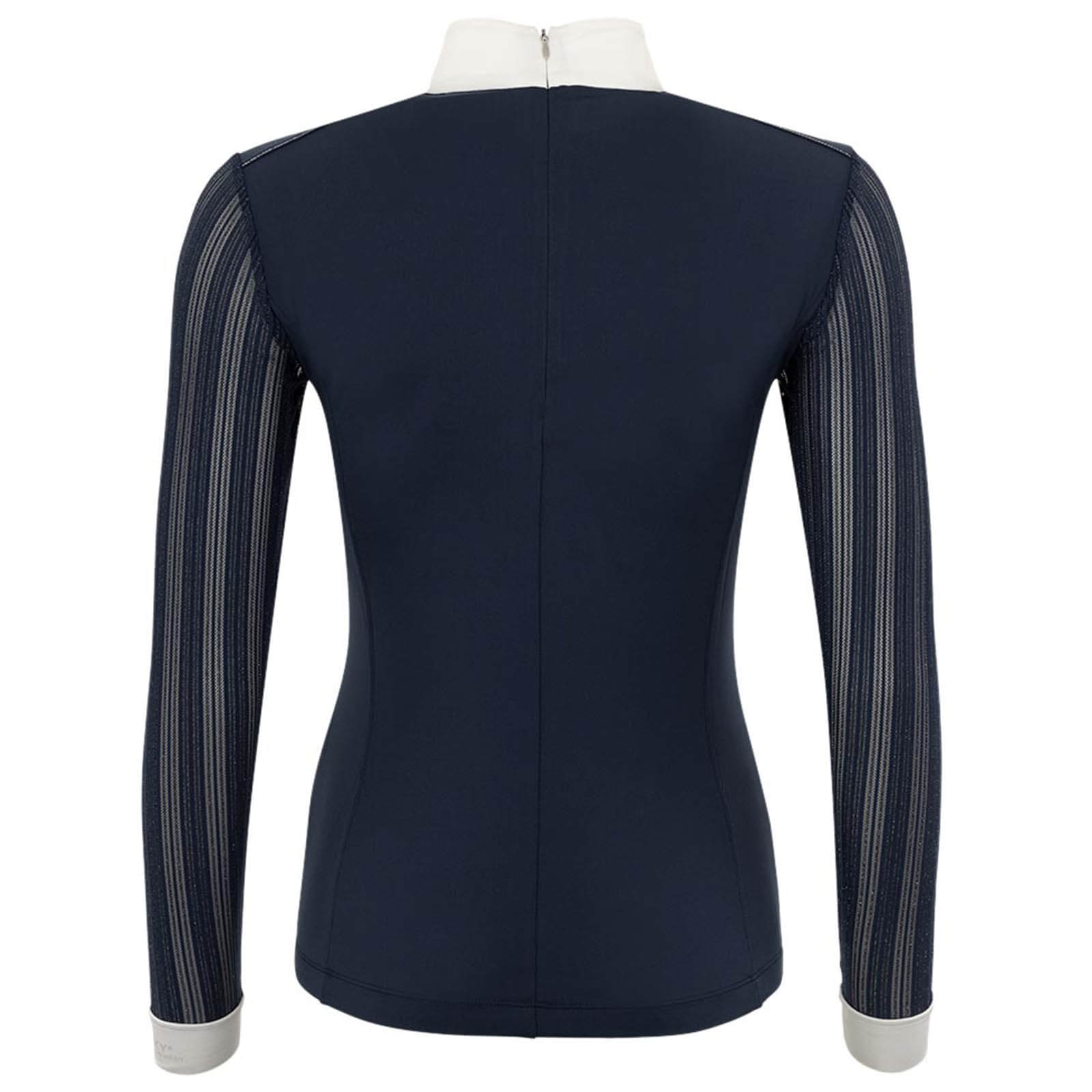 Das Turniershirt Damen Langarm ATP20201 besticht durch sein edles Glitzer-Streifenmuster, das dir auf jedem Turnierplatz einen glänzenden Auftritt garantiert. Die silbernen Nähte und das dezente ANKY®-Logo auf dem Stehkragen runden das Design ab. Der verdeckte Reißverschluss am Rücken sorgt für eine nahtlose Optik und unterstreicht die elegante Linienführung.