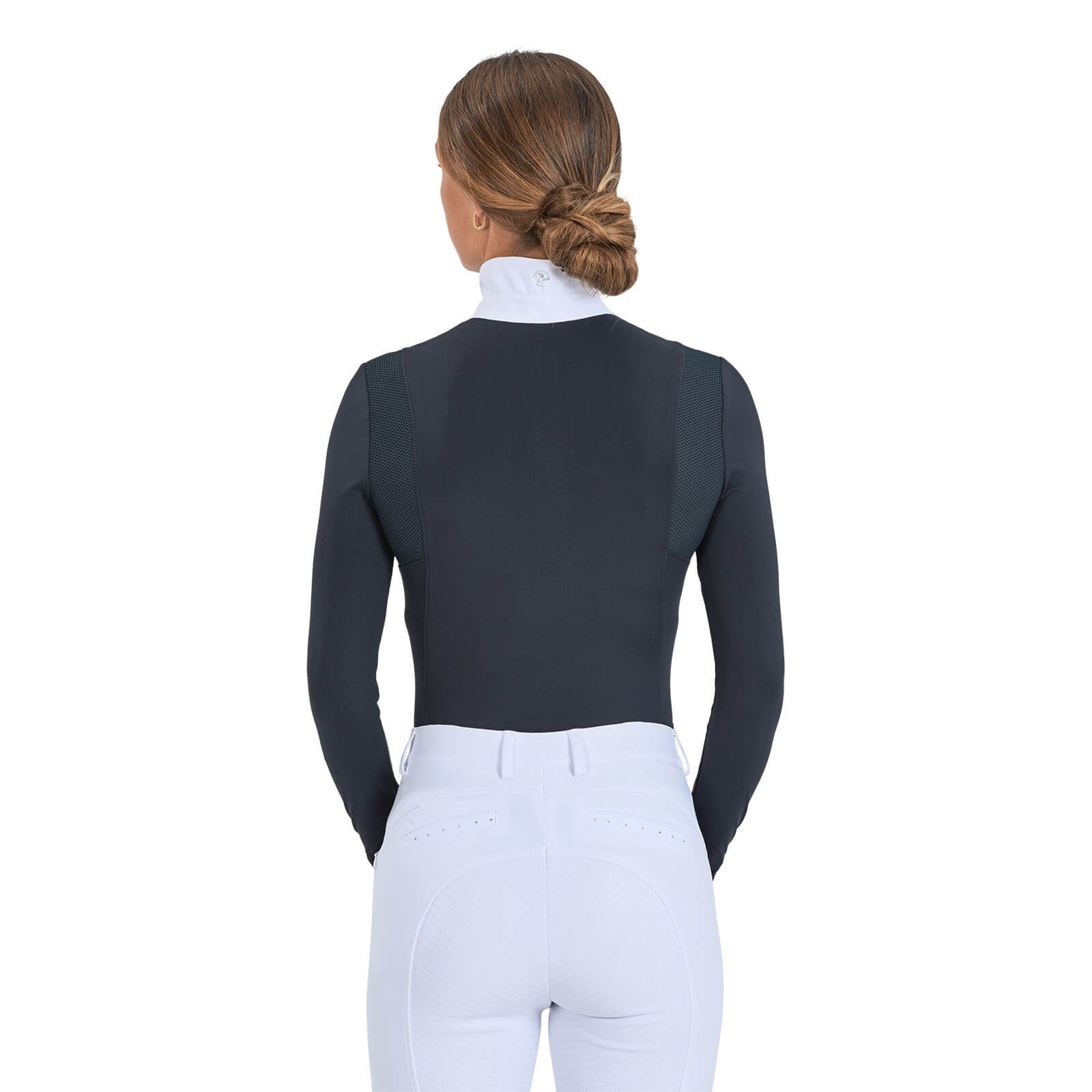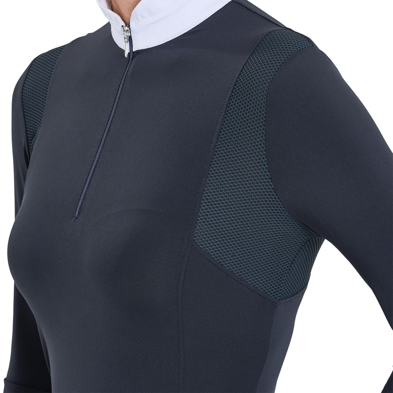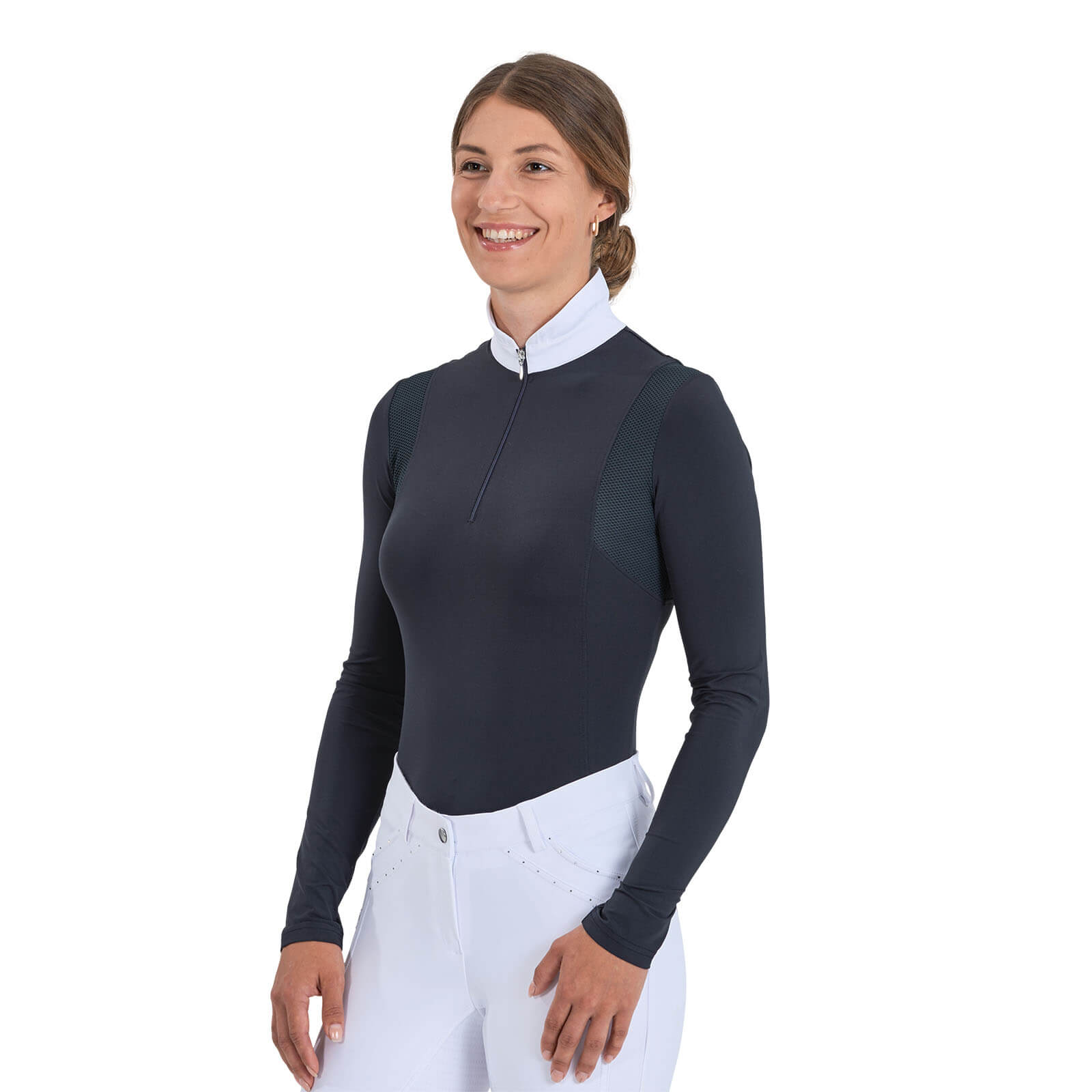 Turnier-Shirt Damen Granada Langarmshirt von BUSSE vereint stilvolle Eleganz mit funktionaler Raffinesse. Dieses Turniershirt ist die ideale Wahl für Reiterinnen, die auf der Suche nach einem modernen und zugleich praktischen Begleiter für das nächste Turnier sind. Lass dich von der Kombination aus edlem Design und hoher Funktionalität begeistern.