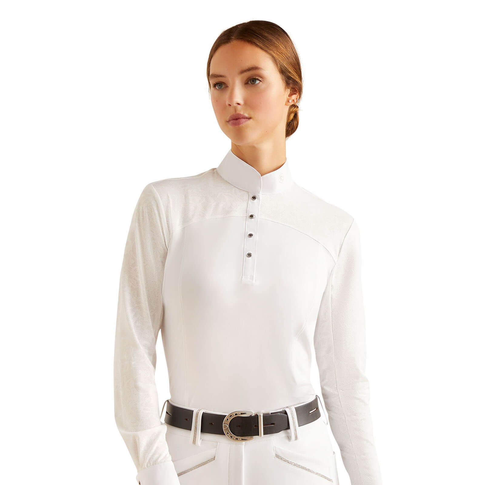 Turniershirt Damen WMS Bellatrix FS 2024 Reitshirt von Ariat verbindet elegantes Design mit höchster Funktionalität. Dieses exklusive Turniershirt bietet dir den ultimativen Komfort und eine beeindruckende Performance, die dich bei jedem Turnier glänzen lässt.