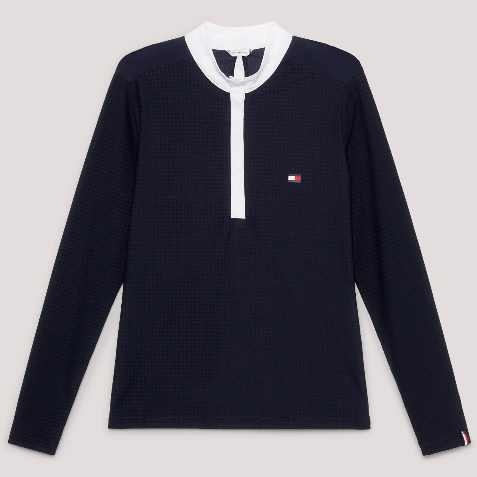 Turniershirt Longsleeve Damen Chelsea Turnier Shirt FS 2024 von Tommy Hilfiger Equestrian verbindet stilvolles Design mit modernster Technologie. Erlebe Eleganz und Komfort während deiner Turniere mit einem Shirt, das sich perfekt an deine Bewegungen anpasst und dich kühl und trocken hält.
