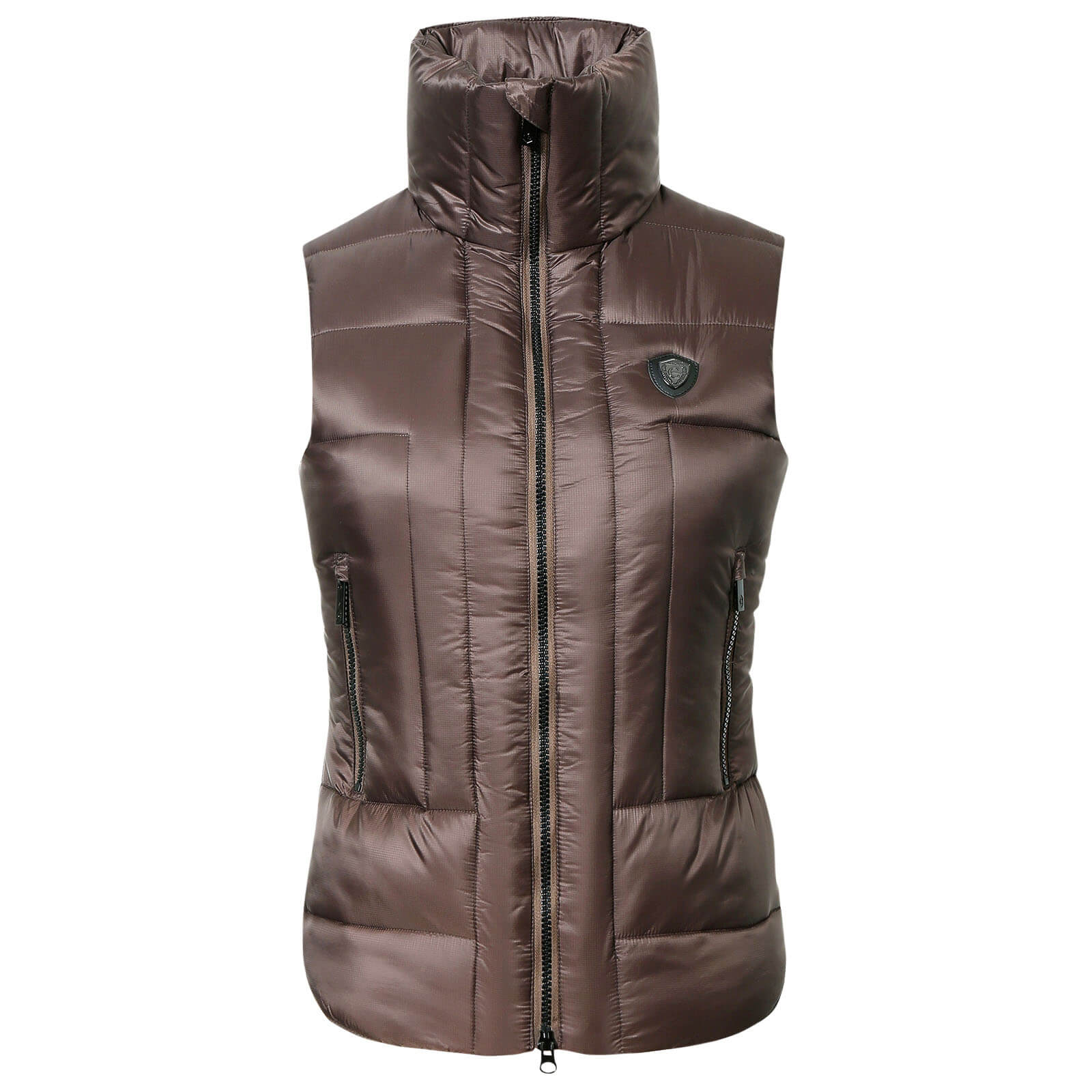 Die Steppweste HW 2024 besticht durch ihr feminines, tailliertes Design, das eine schlanke Silhouette zaubert. Die dezente Farbe Coffee sorgt für einen zeitlosen Look, der sich perfekt mit deiner Reitgarderobe kombinieren lässt. Der praktische Zwei-Wege-Reißverschluss und die zwei Einschubtaschen mit Reißverschluss bieten dir Flexibilität und Platz für all deine Utensilien.