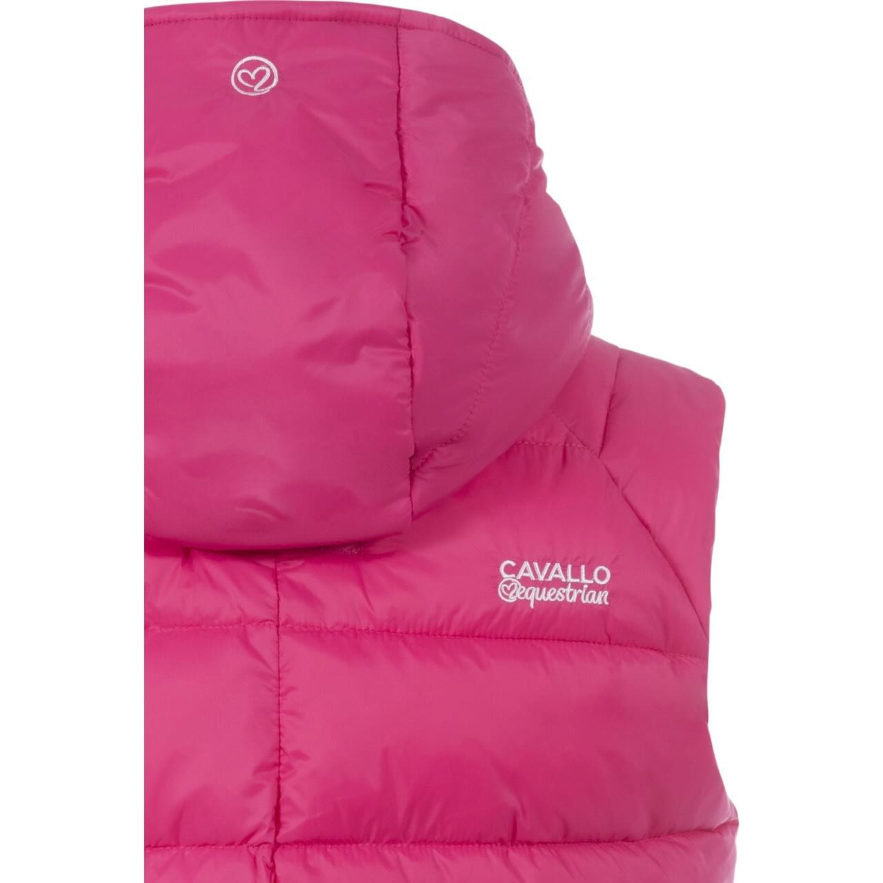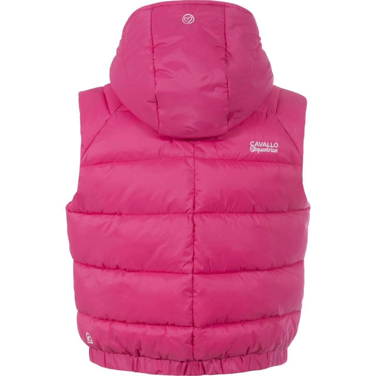 Zwei praktische Reißverschlusstaschen mit Cavallo-Anhängern bieten sicheren Stauraum für kleine Essentials. Die Front ist mit einem hochwertigen Reißverschluss samt Cavallo-Zipper ausgestattet und unterstreicht die sportlich-edle Optik. Liebevolle Akzente wie die schrägen Passen mit Cavallo-Kontraststickerei und das tonige Cavallo-Band mit Kontrastdruck im Kapuzeninneren machen die Weste zu einem echten Blickfang. Auf der Rückseite setzen eine weitere Cavallo-Stickerei an der rechten Schulter sowie eine kontrastfarbige Herzstickerei am Kapuzenrand markentypische Highlights. Diese Details verleihen der Weste eine feminine Note – für stilbewusste Reiterinnen mit Sinn für Qualität.