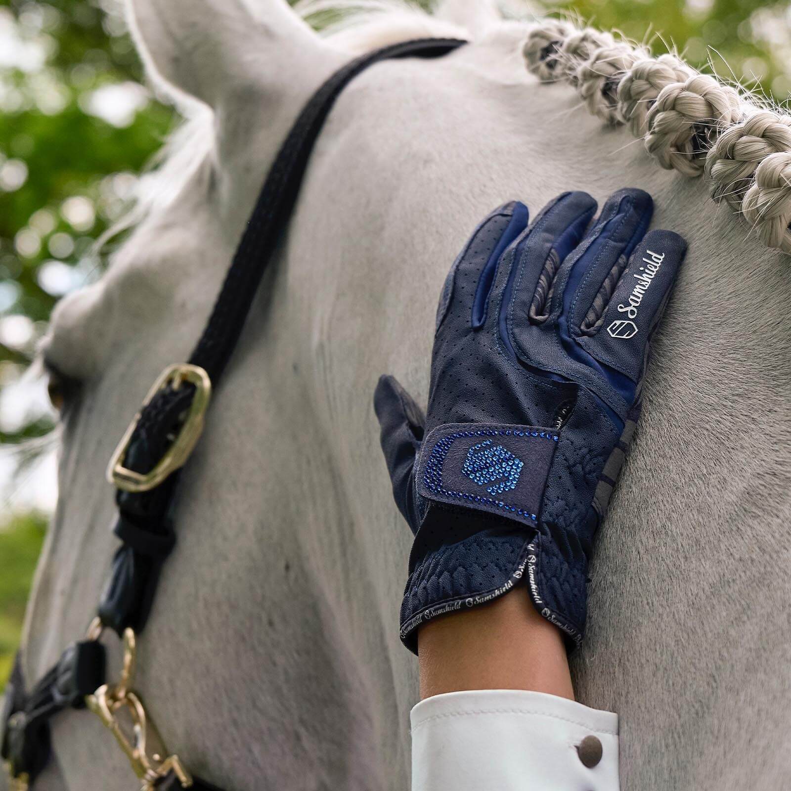 Reithandschuh V-Skin Crystal von Samshield bietet dir nicht nur außergewöhnlichen Komfort, sondern auch einen Hauch von Glamour. Diese ganzjährigen Reithandschuhe vereinen stilvolles Design mit herausragender Funktionalität und machen jedes Reitabenteuer zu einem besonderen Erlebnis.