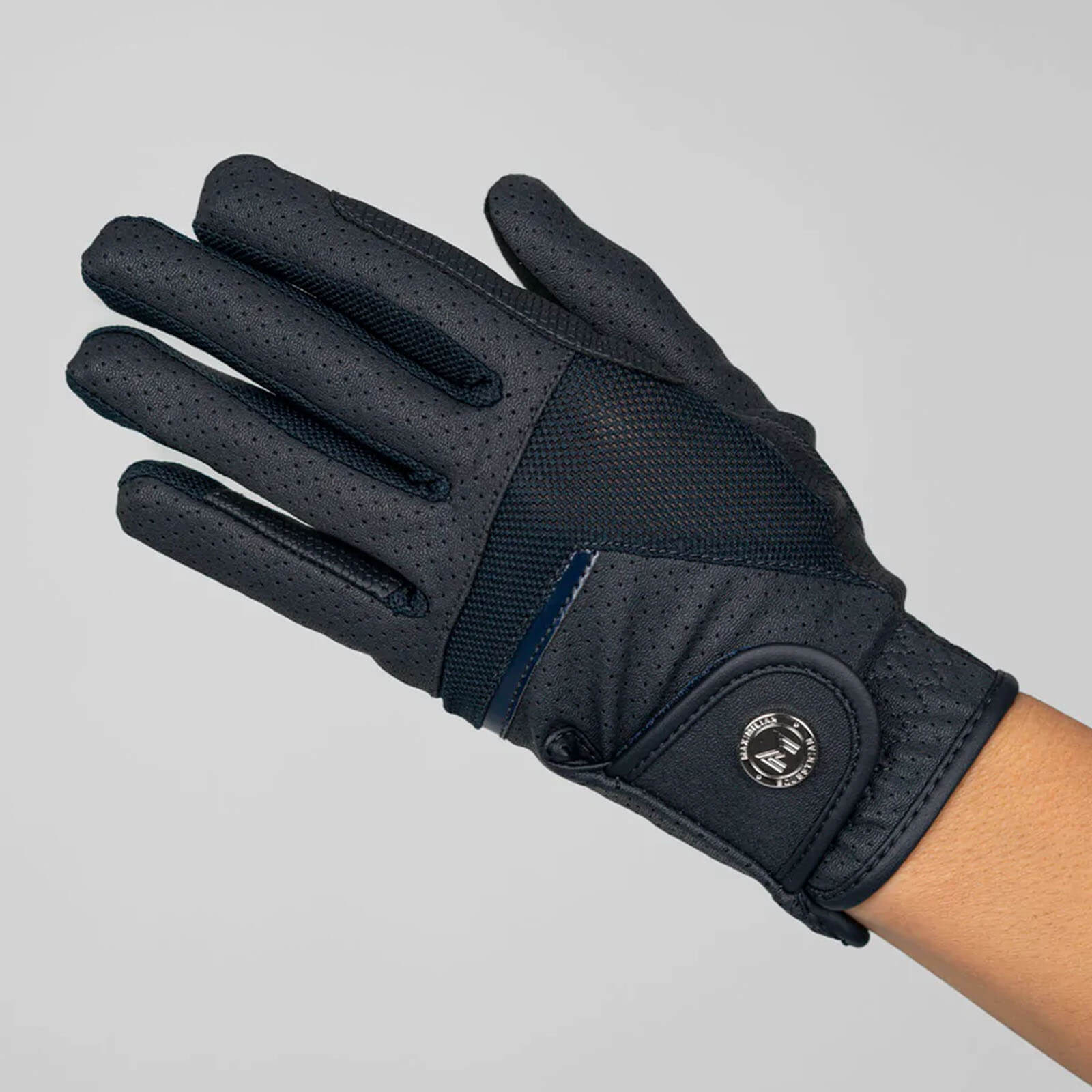 Der Handschuh Max Reithandschuh besticht durch sein elegantes Design in klassisch zeitlosem Schwarz und edlem Navy. Der dezente Mesh-Einsatz sorgt nicht nur für eine ansprechende Optik, sondern auch für Atmungsaktivität und Flexibilität. Der edle Klettverschluss mit dem exklusiven Maximilian-Logo in Metalloptik rundet das Design ab und steht für Qualität und Stil.
