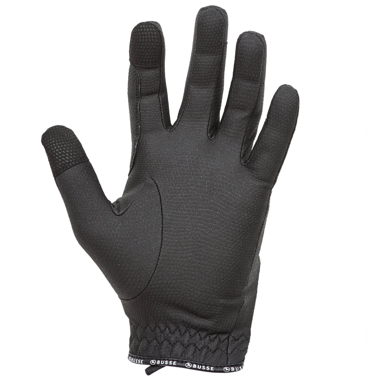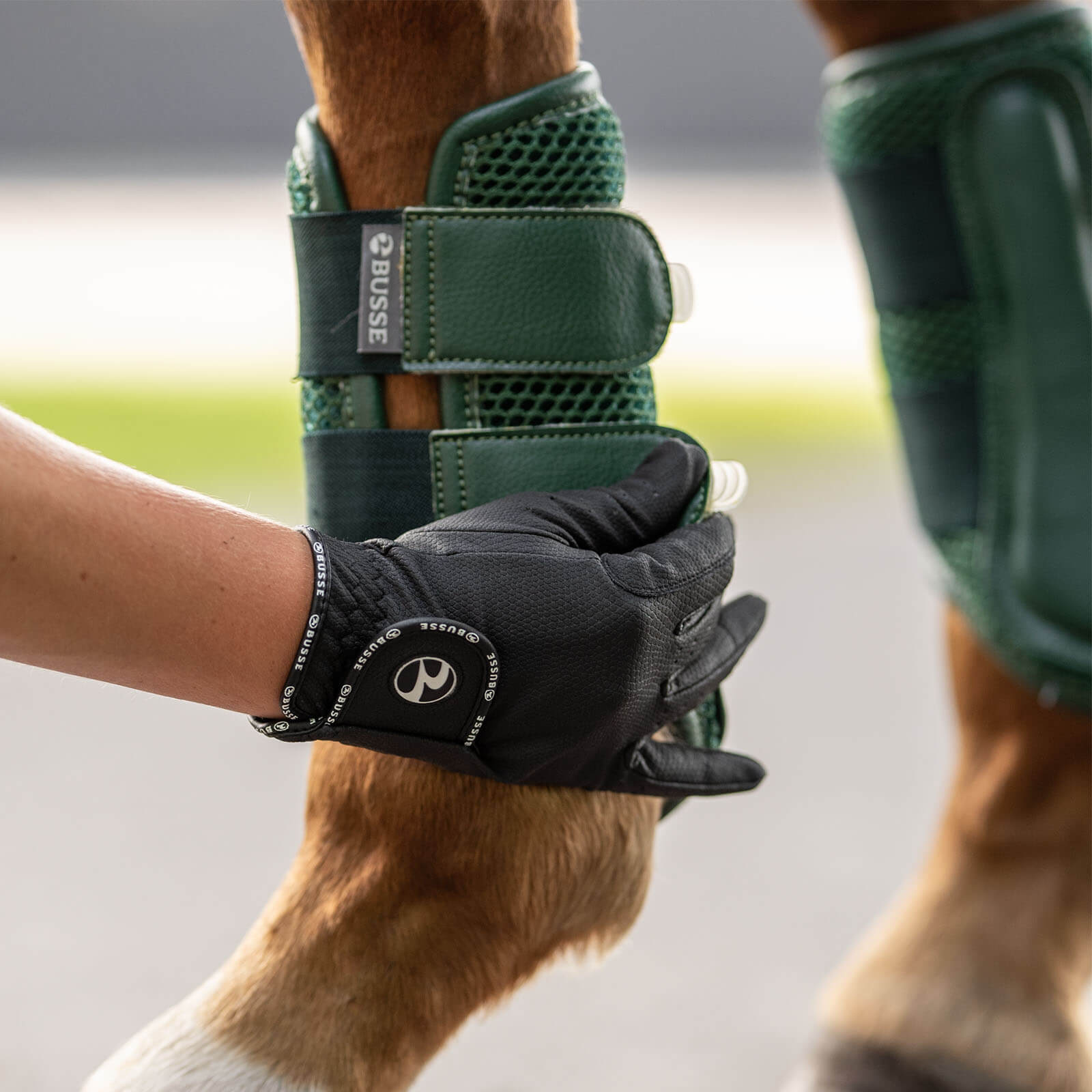 Der Reithandschuh mit kurzem Schnitt am Handgelenk ermöglicht das problemlose Tragen und Bedienen einer Smart- oder Fitnesswatch.