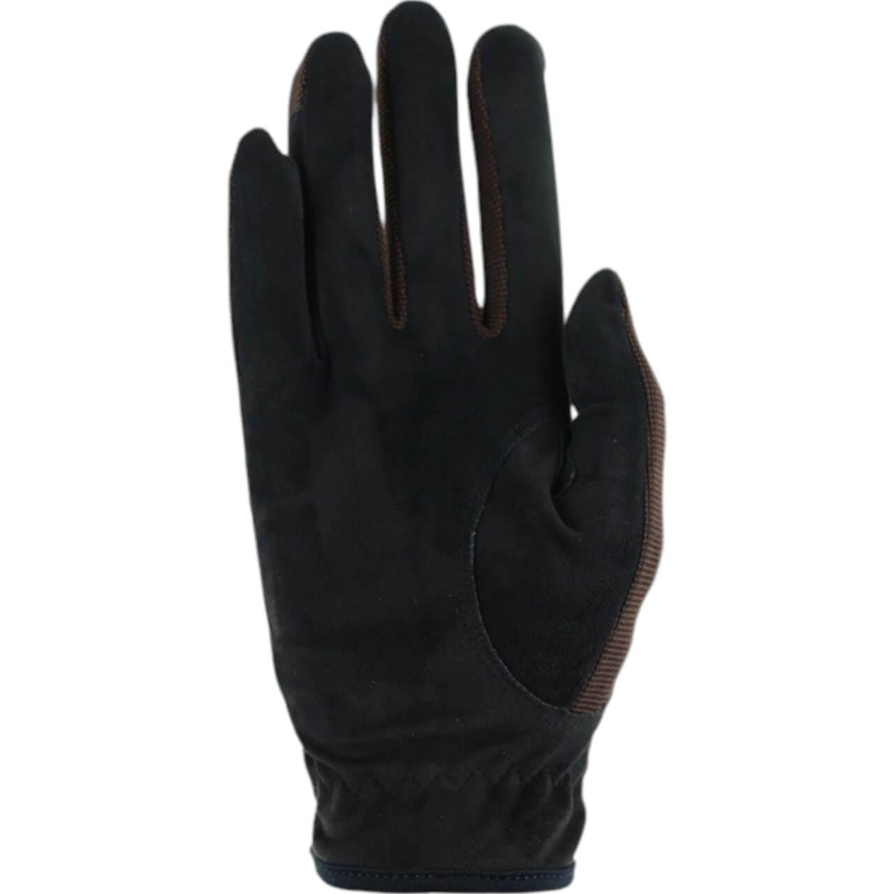Für optimale Kontrolle sorgt die durchgehend mit ECO.SENSE® ausgestattete Innenhand. Dieses strapazierfähige Synthetiksuede ähnelt in Optik und Haptik Wildleder, ist jedoch umweltfreundlicher. Es besteht zu 60 % aus recyceltem Polyester und bietet dennoch hohe Abriebfestigkeit und ein gutes Griffgefühl – selbst bei feuchten Zügeln. Besonders bei der Arbeit mit Gummizügeln zeigt der Meura seine Stärken. Die feinfühlige Verbindung zum Pferdemaul bleibt jederzeit erhalten, was zu einer harmonischen Kommunikation beiträgt. Trotz seiner robusten Eigenschaften bleibt der Handschuh angenehm weich und flexibel.
