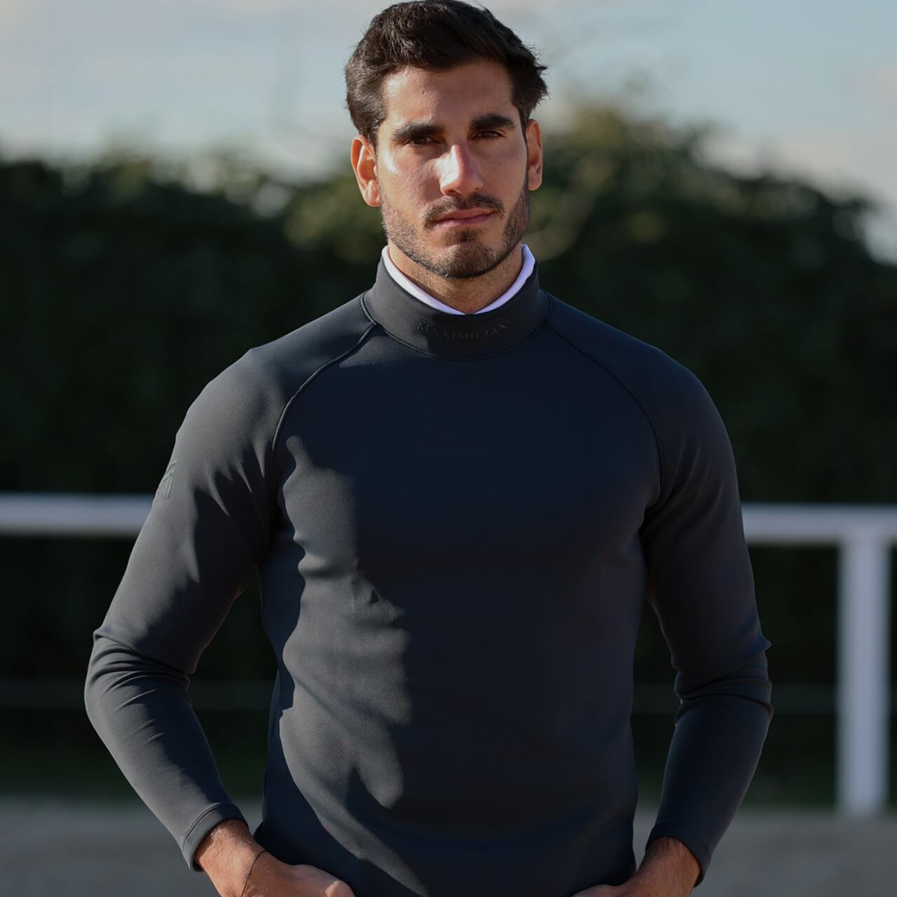 Herren Funktionsshirt Terra Base Layer von Maximilian Equestrian bietet dir das perfekte Zusammenspiel aus Stil und Funktionalität. Genieße den Komfort eines hochwertigen Stretch-Performance-Stoffs, der dich bei allen Reitabenteuern optimal unterstützt. Erlebe, wie sich das weiche Material angenehm an deinen Körper schmiegt und dir absolute Bewegungsfreiheit schenkt.