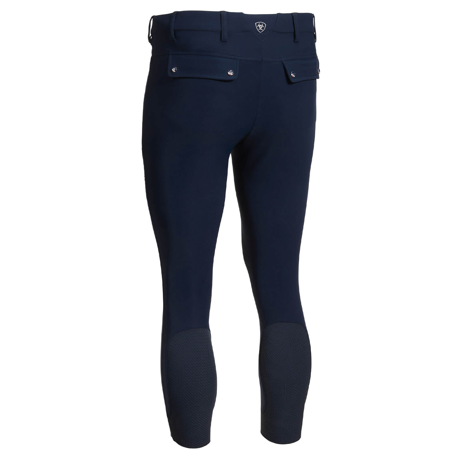 Die Reithose Herren Knee-Grip Tri Factor besticht durch ihr modernes Design in den edlen Farbtönen Plum Grey und Navy. Die markante Logoverzierung und die aufgesetzten Gesäßpattentaschen verleihen der Hose einen stilvollen Look. Das Design ist nicht nur optisch ansprechend, sondern bietet durch den V-förmigen Ariat® V3®-Stretcheinsatz am hinteren Bund auch außergewöhnliche Dehnbarkeit und Formstabilität.