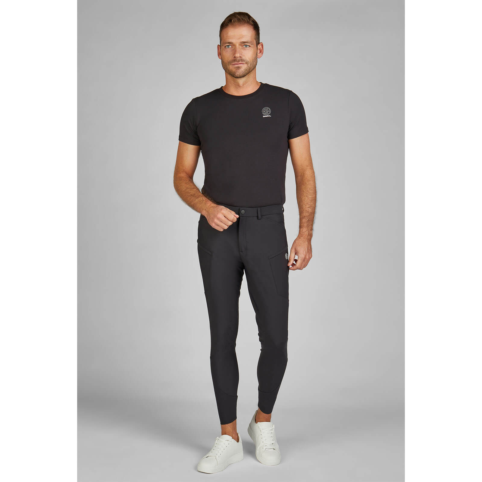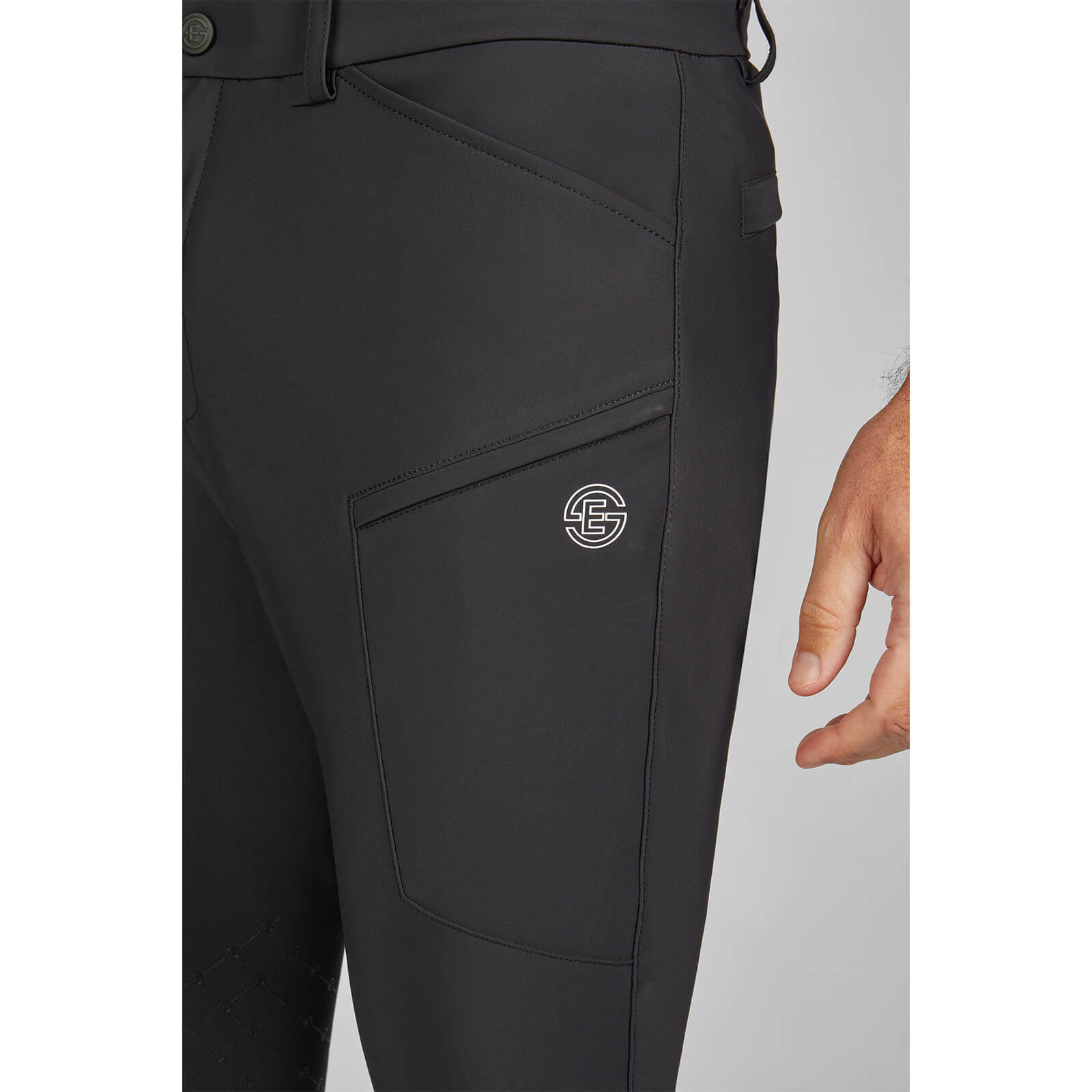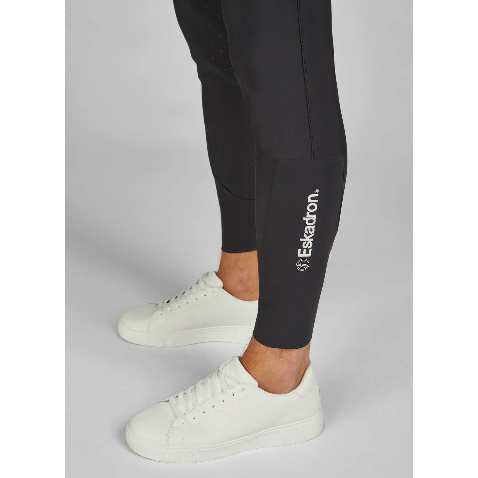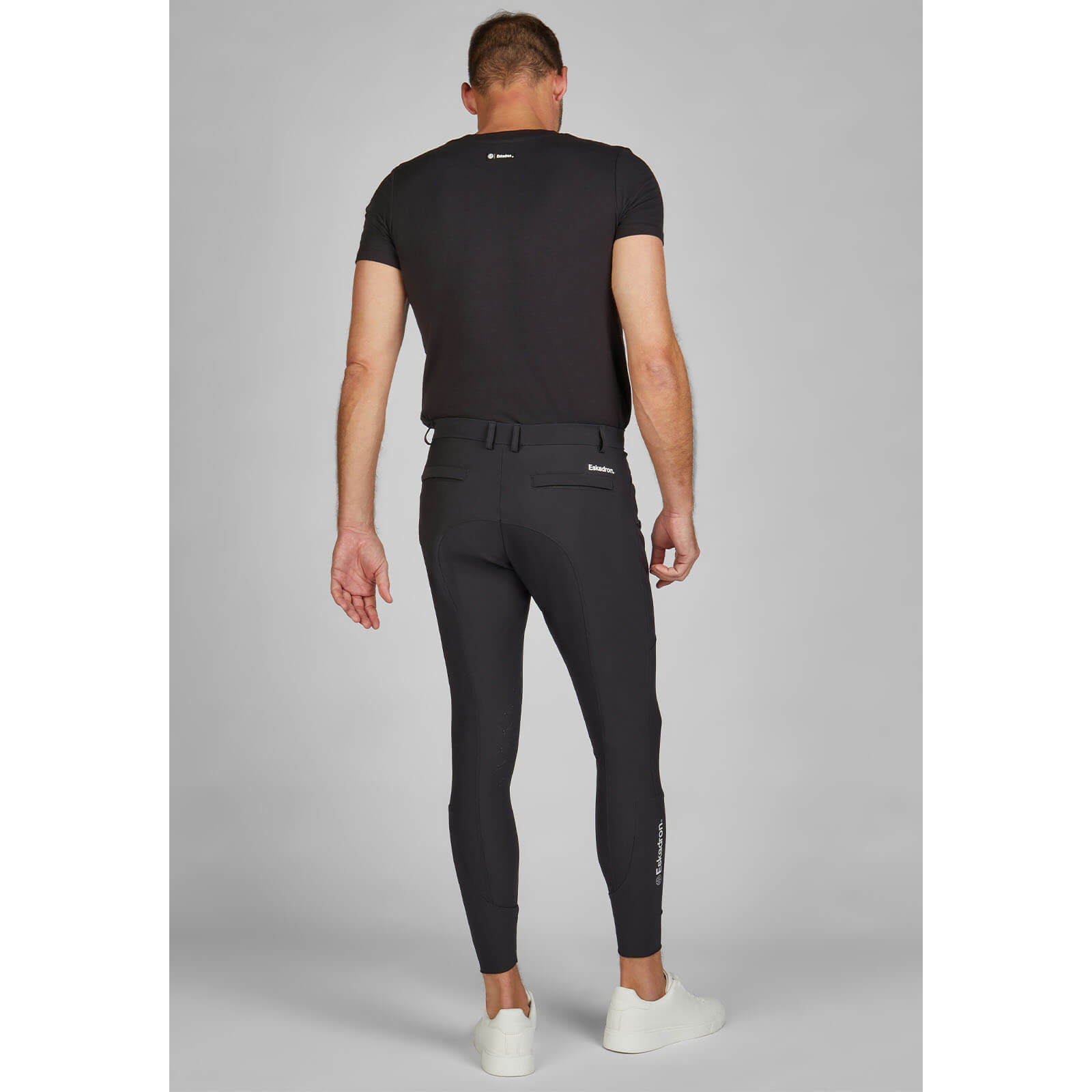 Die Reithose besticht durch ihre klassische schwarze Farbgebung und den schmalen Bund, der nicht nur für eine elegante Silhouette sorgt, sondern auch einen sicheren Sitz garantiert. Der subtile Eskadron-Schriftzug verleiht der Hose eine exklusive Note, während der elastische Beinabschluss dafür sorgt, dass sie perfekt in den Stiefeln sitzt und nicht verrutscht.