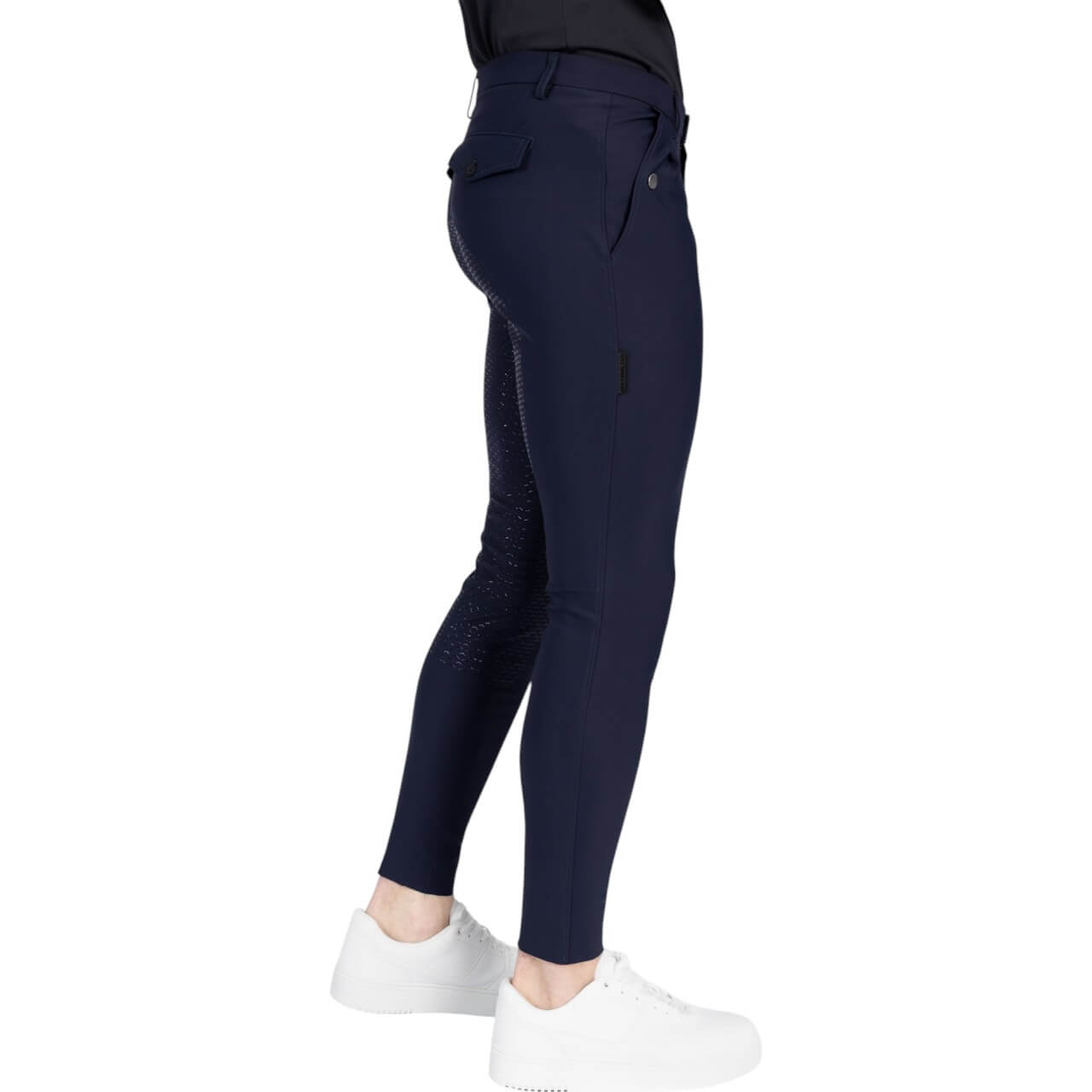 Ein besonderes Feature ist der Silikonstreifen an der Innenseite des Bundes, der ein Hochrutschen deines Oberteils verhindert. Die Kombination aus Front- und Gesäßtaschen sorgt für zusätzlichen Stauraum und eine stilvolle Optik. Die Hose ist sowohl mit Knie-Grip als auch mit Full-Grip erhältlich, sodass du die Variante wählen kannst, die deinen Bedürfnissen am besten entspricht. Dank der hochwertigen Verarbeitung bleibt die Reithose auch bei häufiger Nutzung in Topform. Ein Must-have für stilbewusste Reiter!