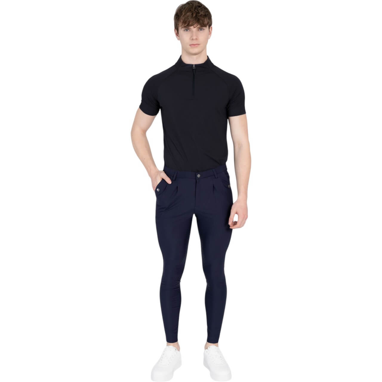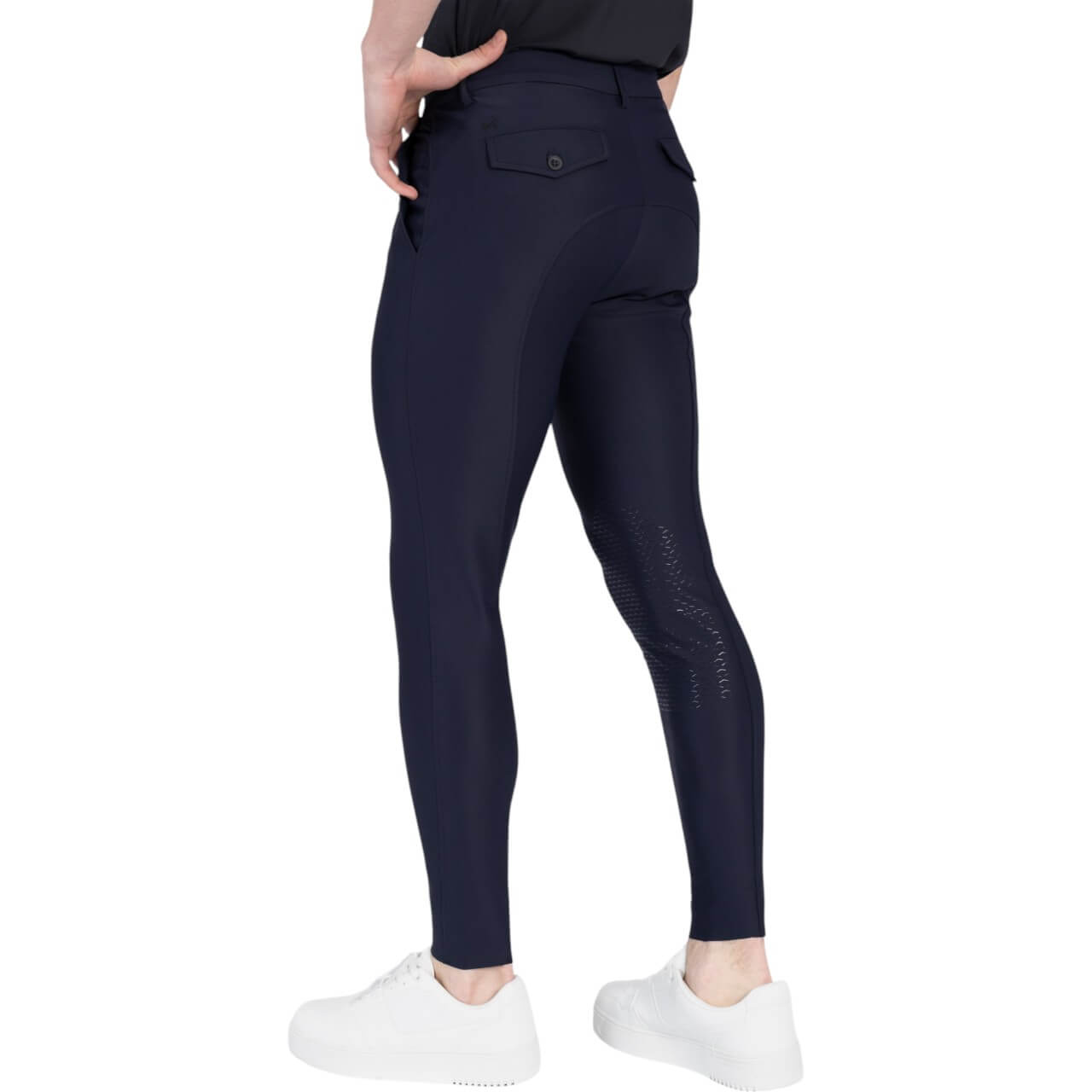 Die Reithose Herren Knee-Grip Founder kombiniert ein zeitloses Falten-Design mit modernen Features. Der ergonomische Schnitt sorgt für eine perfekte Passform und eine schmeichelhafte Silhouette. Dank des hochwertigen 4-Wege-Stretch-Materials genießt du maximale Bewegungsfreiheit im Sattel. Der Silikon-Kniebesatz garantiert sicheren Halt und eine optimale Verbindung zum Pferd. Dezente Logo-Details verleihen der Hose einen edlen Look.