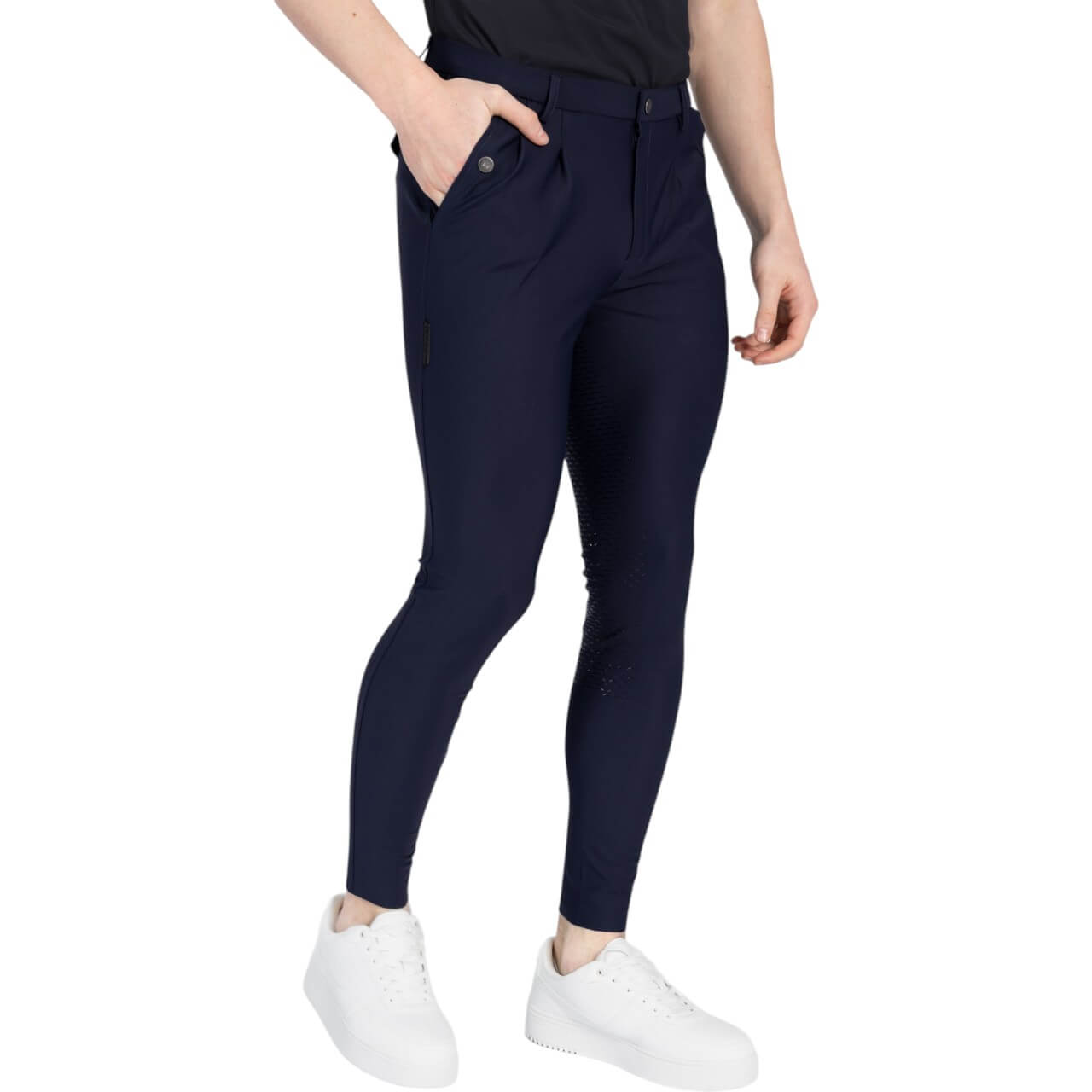 Ein besonderes Feature ist der Silikonstreifen an der Innenseite des Bundes, der ein Hochrutschen deines Oberteils verhindert. Die Kombination aus Front- und Gesäßtaschen sorgt für zusätzlichen Stauraum und eine stilvolle Optik. Die Hose ist sowohl mit Knie-Grip als auch mit Full-Grip erhältlich, sodass du die Variante wählen kannst, die deinen Bedürfnissen am besten entspricht. Dank der hochwertigen Verarbeitung bleibt die Reithose auch bei häufiger Nutzung in Topform. Ein Must-have für stilbewusste Reiter!