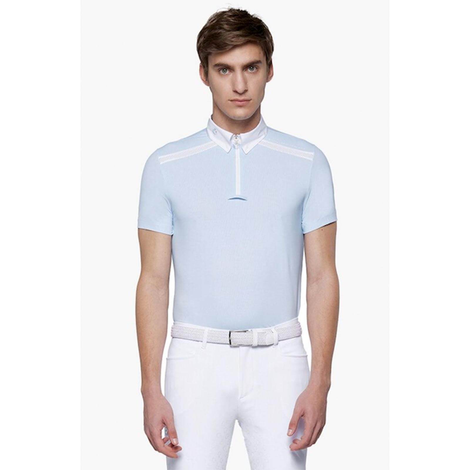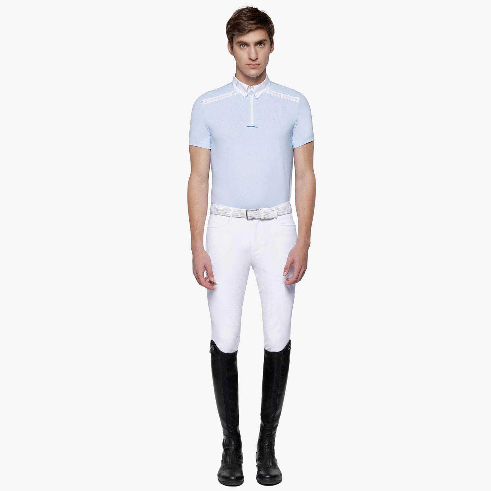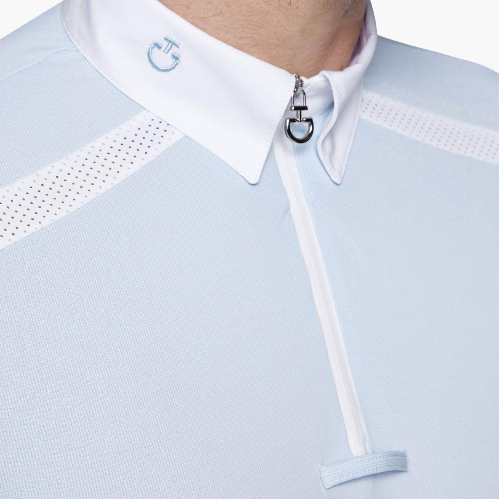 Das Turniershirt überzeugt durch seine schmale Passform und das stilvolle Light Blue Square Muster. Die perforierten Stoffeinsätze an den Schultern verleihen dem Shirt nicht nur einen modischen Akzent, sondern sorgen auch für optimale Luftzirkulation. Mit dem markanten Cavalleria Toscana-Schriftzug und dem CT-Logo-Reißverschluss setzt du ein Statement auf jedem Turnierplatz.