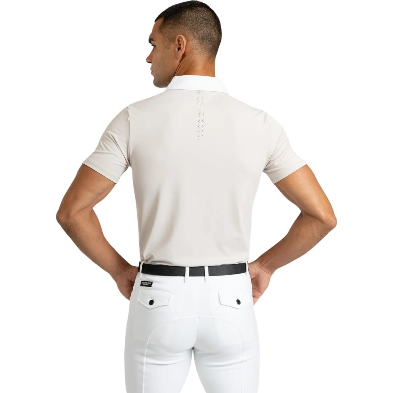 Gefertigt aus einem 360° Stretch-Performance-Stoff, ermöglicht dir das Shirt volle Bewegungsfreiheit bei jedem Ritt. Dank seiner schnelltrocknenden und atmungsaktiven Eigenschaften bleibst du auch an heißen Wettkampftagen angenehm kühl. Die perforierte Streifenkonstruktion auf der Rückseite sorgt für optimalen Luftstrom.