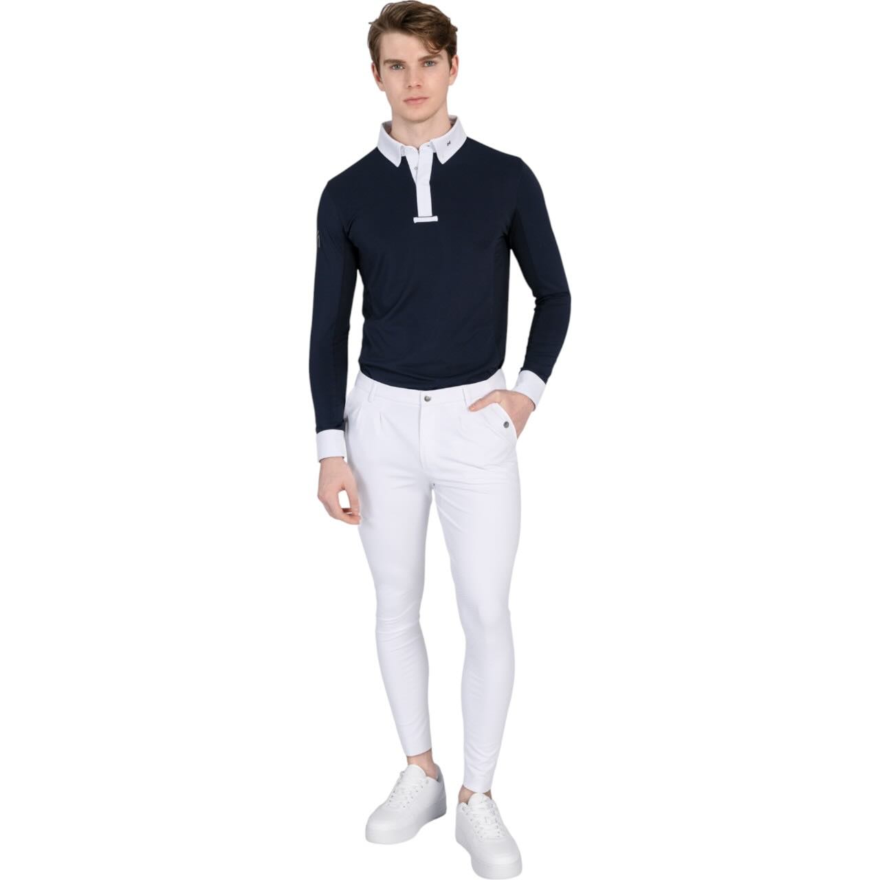 Das Turniershirt Langarm Focus von Maximilian Equestrian überzeugt mit modernem Design, innovativem Funktionsmaterial und eleganten Details. Entwickelt für sportlich ambitionierte Reiter, vereint es Komfort, Stil und technische Leistungsfähigkeit in einem hochwertigen Turnieroutfit.