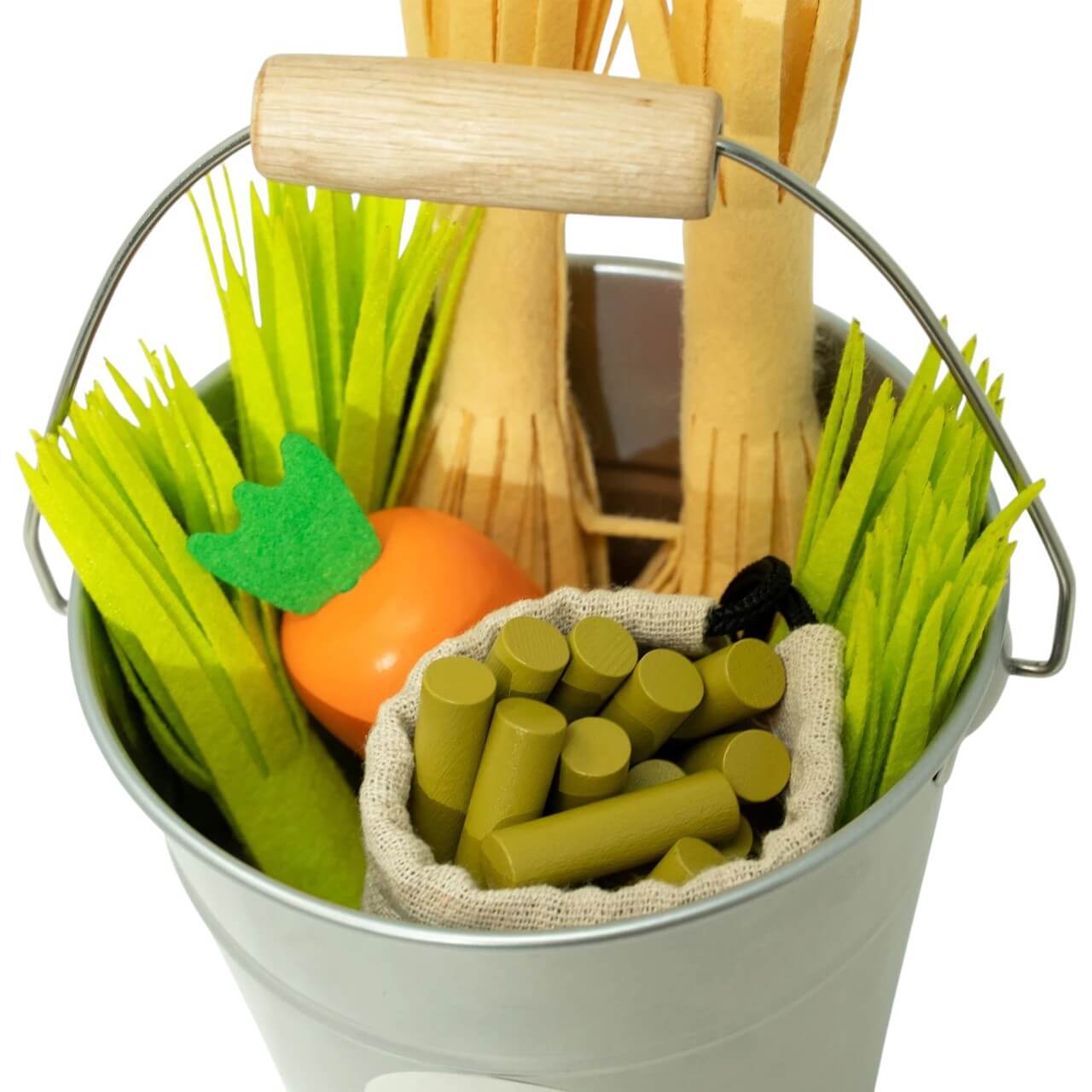 | Lieferumfang | Apfel, Gras, Karotten, Leckerlies, Leckstein, Pellets, Salz, Stroh, Zuckerwürfel |