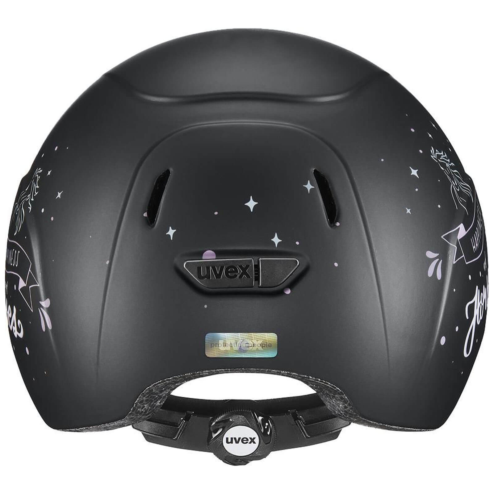 Der UVEX Reithelm Kidoxx Dekor beeindruckt mit einer Auswahl an attraktiven Farben wie Happyhorse Black Matt und Flower Navy Shiny. Die glänzenden und matten Oberflächen verleihen dem Helm eine edle Optik, während das Kunststoffmaterial für eine robuste und langlebige Nutzung sorgt. Perfekt ausbalanciert zwischen schickem Aussehen und funktionalen Vorteilen, ist dieser Helm ein echter Hingucker im Stall.