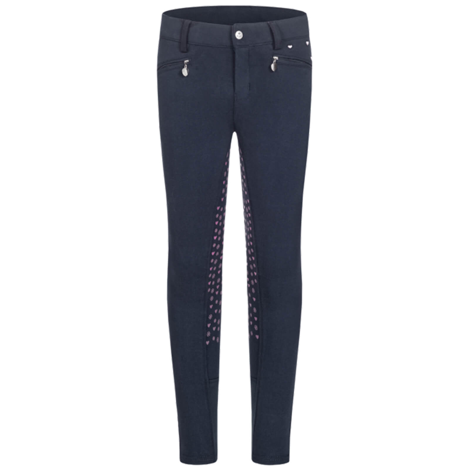 Das visuelle Highlight der Thermoreithose Kinder Lucky Gisa ist der dekorative Schneeflocken-Herzchen Print, der dem Silikonvollbesatz einen besonderen Look verleiht. Der nachtblaue Farbton harmoniert perfekt mit jeder Reitgarderobe und die Stickerei über der Reißverschlusstasche sorgt für zusätzliche Raffinesse. Die Gürtelschlaufen erlauben eine individuelle Anpassung und unterstreichen den sportlichen Look.