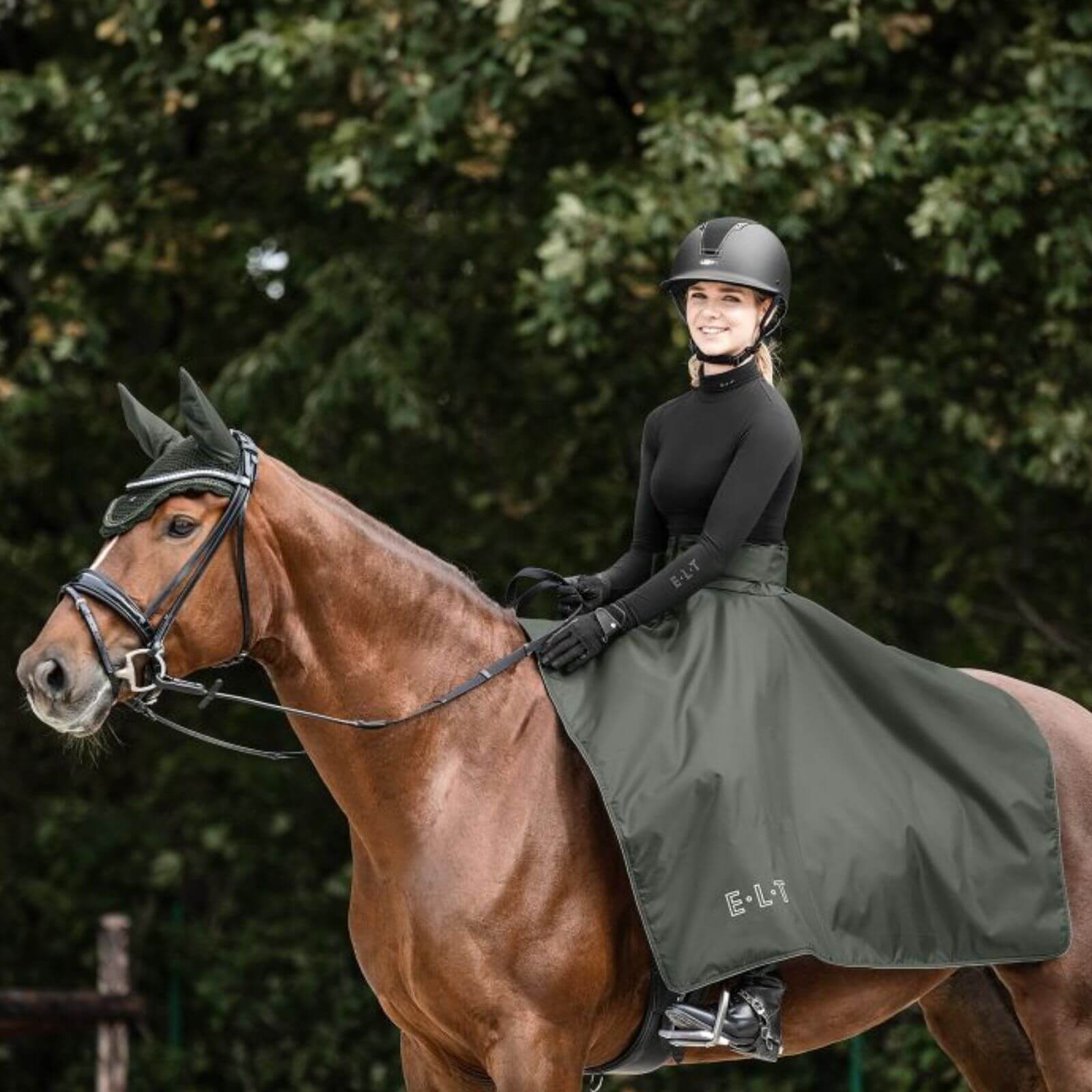 Der E.L.T Thermo-Reitrock erstrahlt in einem eleganten Dunkeloliv, das sich harmonisch in jede Reitgarderobe einfügt. Die reflektierenden Elemente sorgen nicht nur für erhöhte Sicherheit, sondern verleihen dem Rock auch eine moderne Optik. So bist du nicht nur gut geschützt, sondern machst auch optisch eine gute Figur.