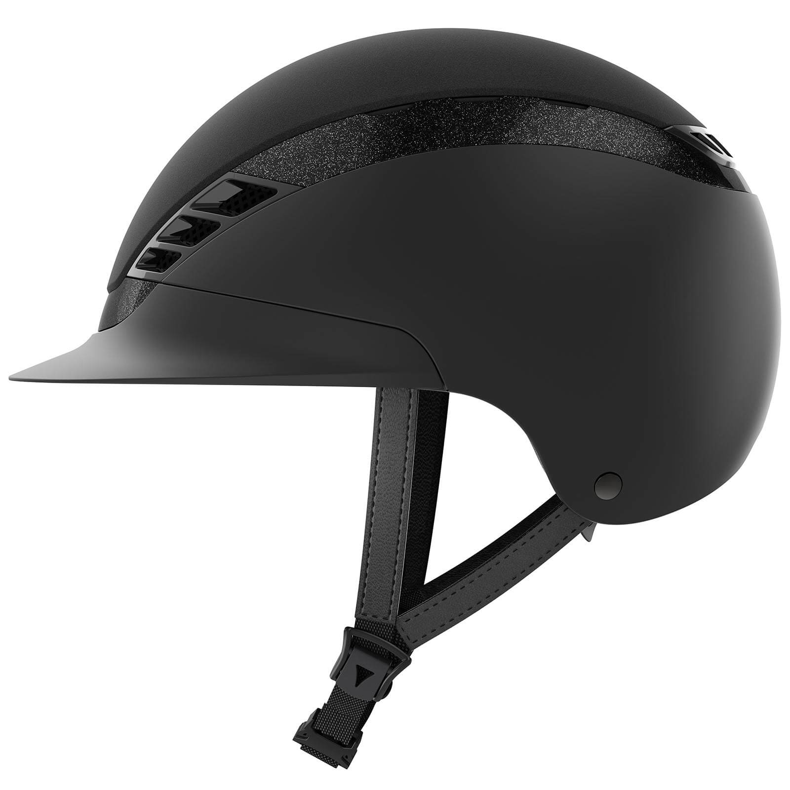 Der Reithelm Air Luxe Supreme besticht durch sein harmonisches Ton-in-Ton-Design der Ober- und Unterschale. Der hochwertige Textilüberzug mit Glitzerelementen macht ihn zu einem echten Hingucker auf jedem Reitplatz. Dieses durchdachte Design bietet nicht nur optische Vorteile, sondern sorgt auch für eine gleichmäßige Gewichtsverteilung und erhöhten Tragekomfort.