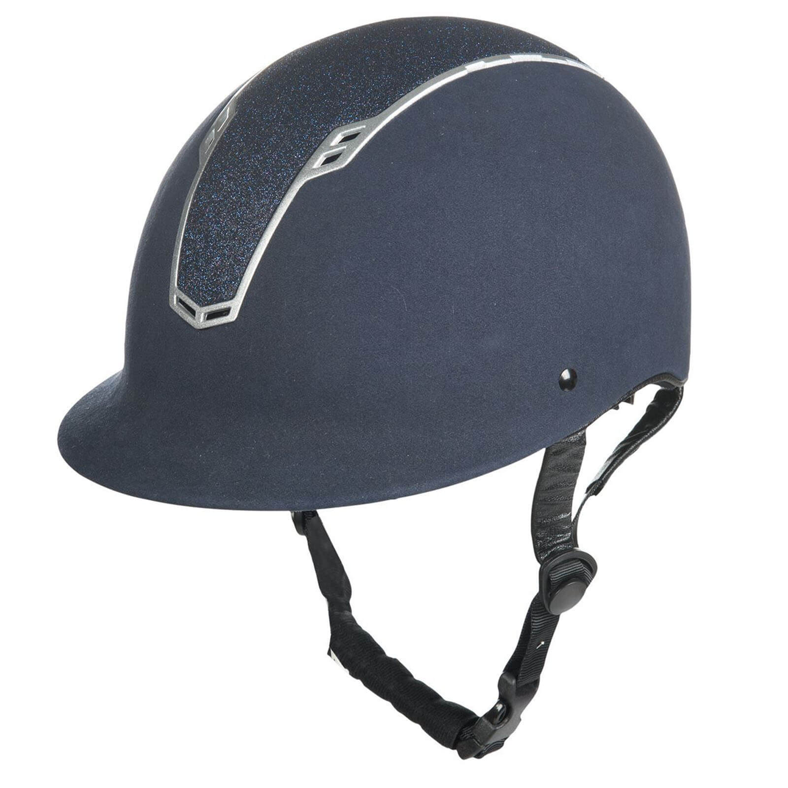 Der Reithelm Graz überzeugt durch seine elegante Optik mit einem Wildlederimitat und einem glänzenden Glitzereinsatz. Diese hochwertigen Materialien verleihen dir nicht nur einen edlen Look, sondern sorgen auch für eine lange Lebensdauer. Der metallisch wirkende Kunststoffrahmen ist nicht nur ein Hingucker, sondern bietet durch die Belüftungsschlitze vorne und hinten eine optimale Luftzirkulation.