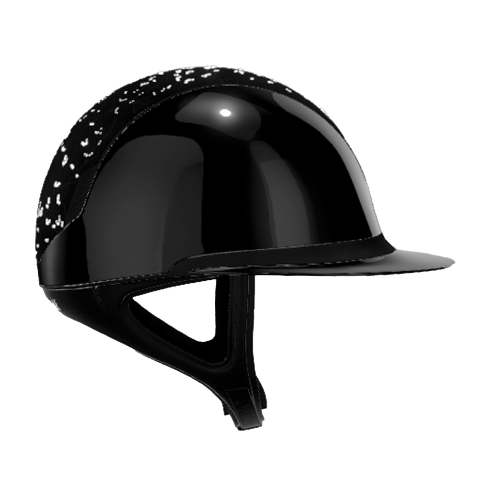 Produktinformationen "Reithelm 2.0 Black Shadowglossy Top Crystal Leaf Trim + Blason Matt Black"