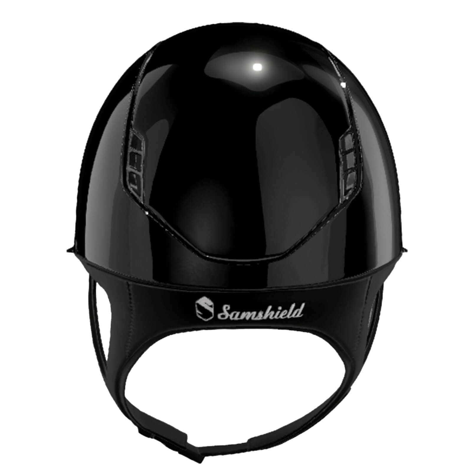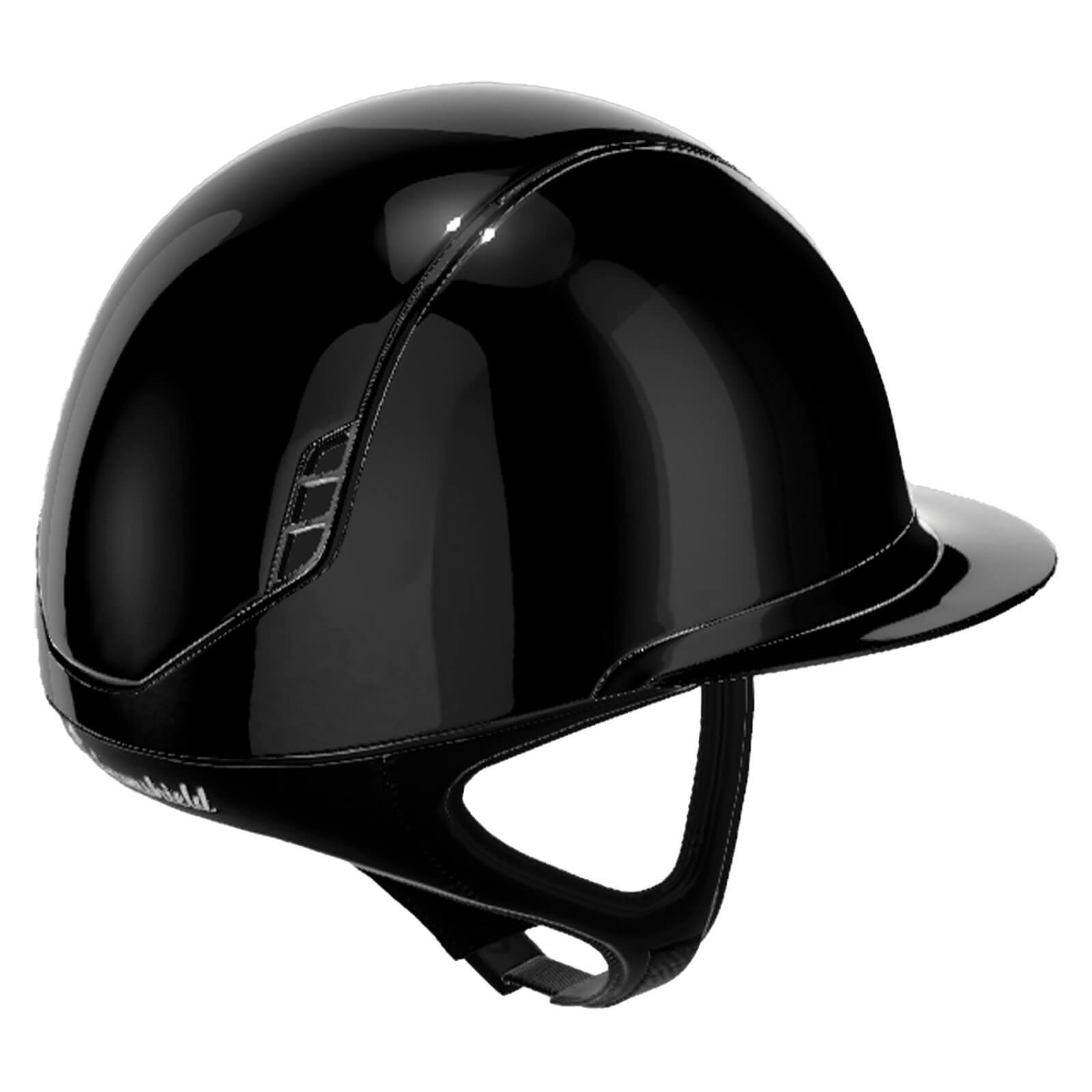 Reithelm Miss Shield 2.0 Black SG Top + Frontal Band Shadowglossy Trim + Blason Black Chrome 5SW – Dein stilvoller Begleiter für maximale Sicherheit im Reitsport