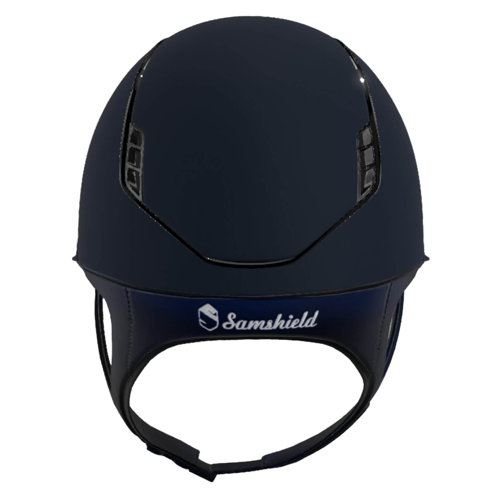 Reithelm Miss Shield 2.0 Blue SM Top SM Frontal Band SM Trim Chrome 5 SW Blason Chrome Black von Samshield vereint innovatives Design mit höchster Sicherheitsstandards. Dieser exklusive Reithelm besticht durch seine luxuriöse Optik und bietet gleichzeitig optimalen Schutz und Komfort für deinen Ritt.
