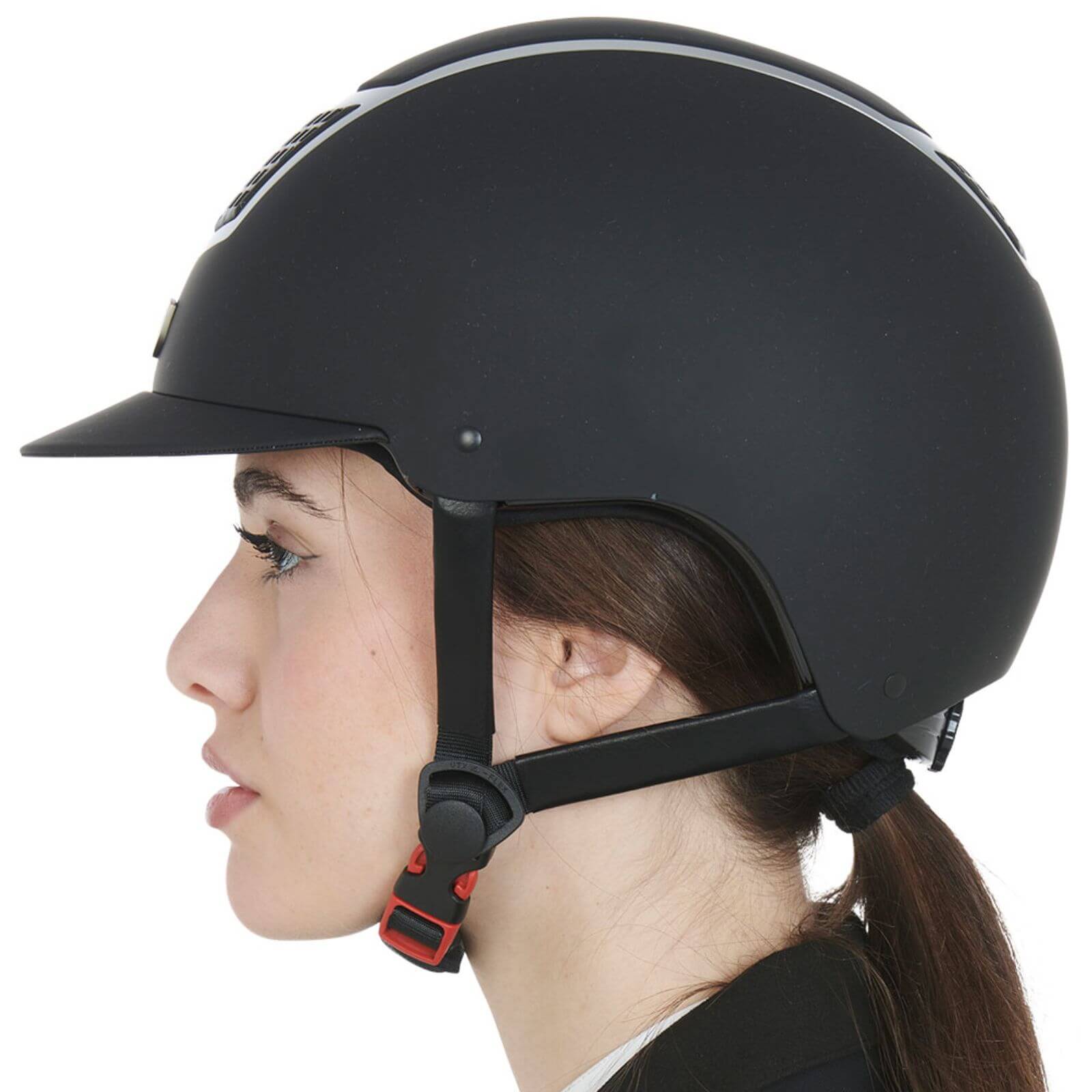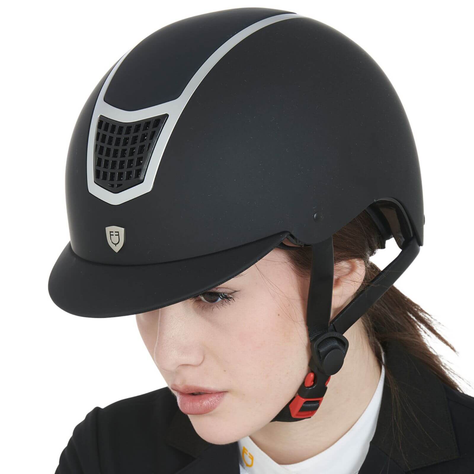 Reithelm Unisex Ultra Light with Polished Frame Helm von Equestro vereint herausragenden Schutz mit einem eleganten Design. Erlebe Komfort, der keine Kompromisse bei der Sicherheit eingeht, und genieße jede Reiteinheit mit Leichtigkeit und Stil.