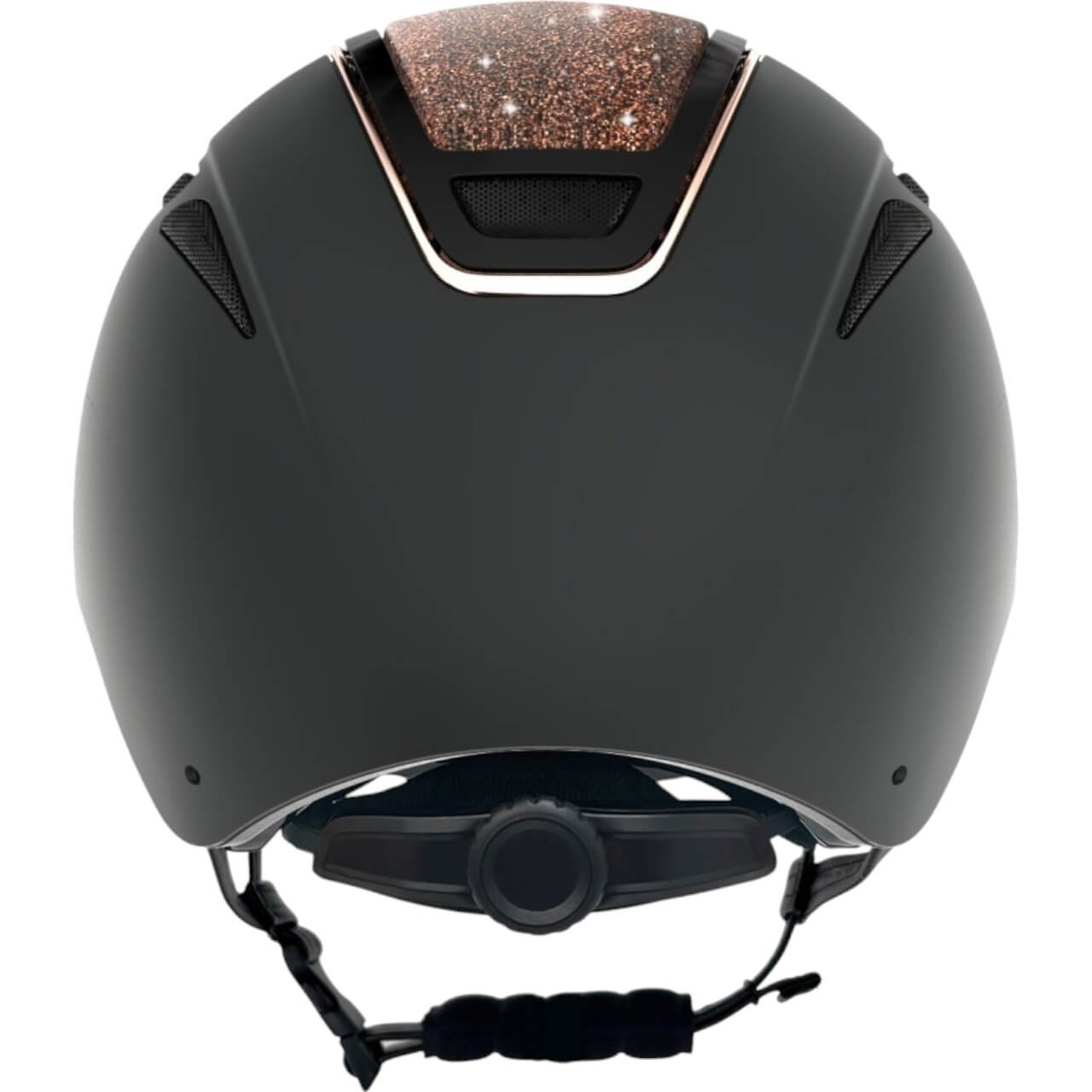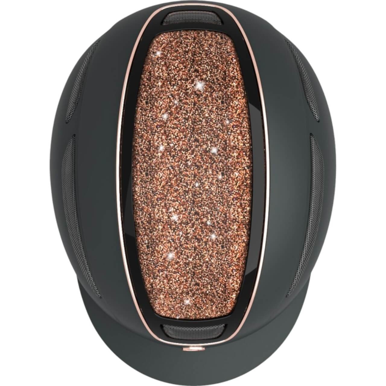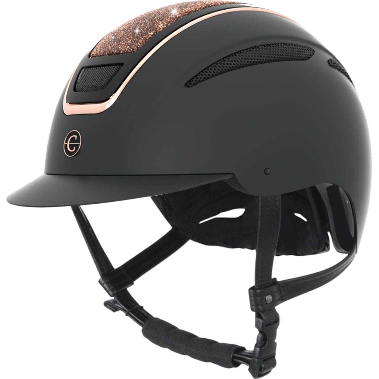 Der Reithelm Elite Helm besticht durch sein zeitloses Design in edlem Schwarz oder auffälligem Roségold. Die lackschwarze Variante sorgt für einen besonders glänzenden Auftritt. Die mit Kunstleder veredelten Riemen verleihen nicht nur einen luxuriösen Look, sondern erhöhen auch den Tragekomfort. So kannst du dich voll und ganz auf dein Reitabenteuer konzentrieren.