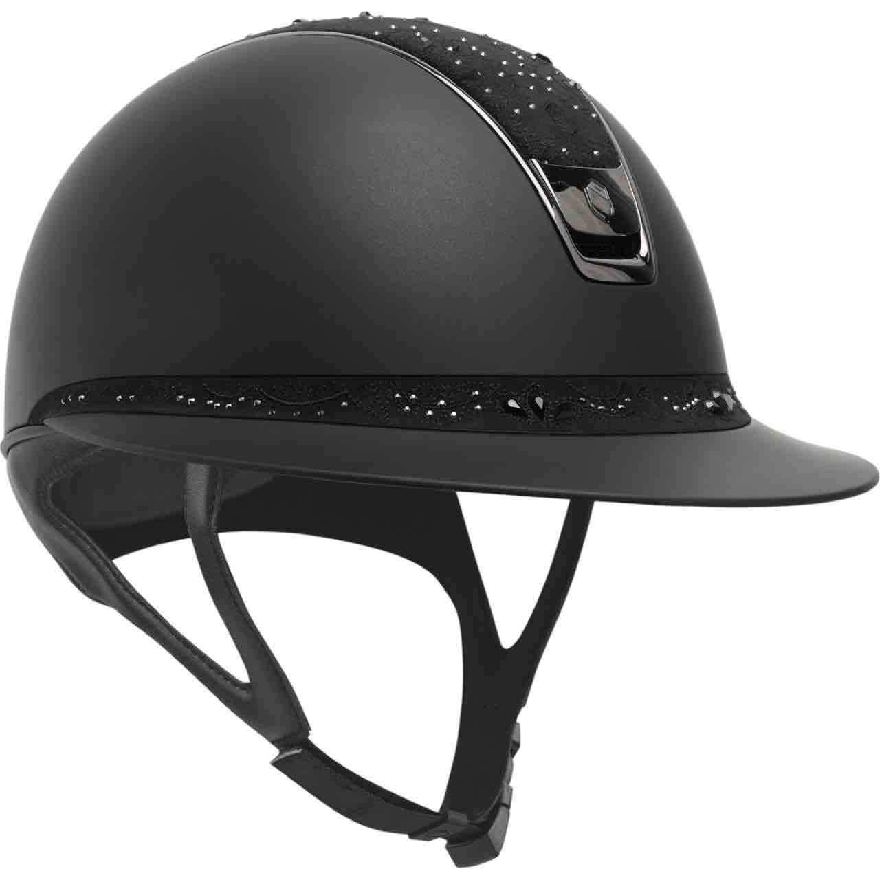 Samshield präsentiert mit dem Reithelm Miss Shield 2.0 Shadowmatt Black Crystal Bloom Black eine stilvolle Symbiose aus innovativer Sicherheitstechnologie, edlem Design und exzellentem Tragekomfort. Perfekt für anspruchsvolle Reiterinnen, die keine Kompromisse eingehen wollen.
