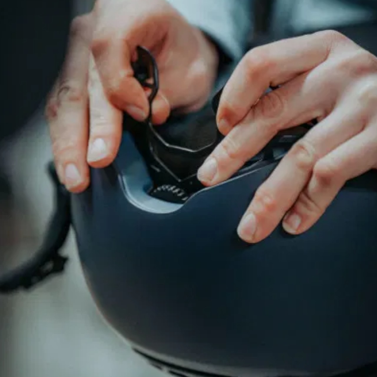 • Die Riemen sind so einzustellen, dass der Helm nicht verrutschen kann.
