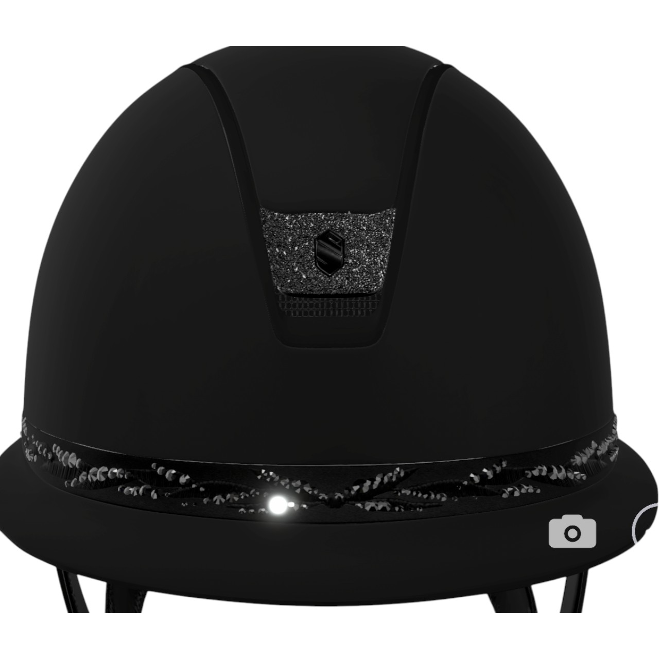 Der Reithelm Miss Shield 2.0 besticht durch seine zeitlose Ästhetik in schwarzer Optik. Die Kombination aus Flower Swarowski und Crystal Fabric Black verleiht dem Helm einen edlen Glanz. Dieses Design sorgt nicht nur für einen stilvollen Auftritt, sondern bietet auch optimalen Schutz.