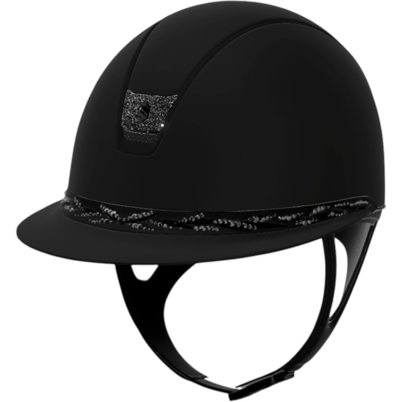 Reithelm Miss Shield 2.0 Shadowmatt | Flower Swarovski / Matt Black | Crystal Fabric Black von Samshield vereint maximale Sicherheit mit atemberaubendem Design. Erlebe den Komfort und die Sicherheit, die dich bei jedem Ritt begleiten, während du zugleich mit einem eleganten Look beeindruckst.