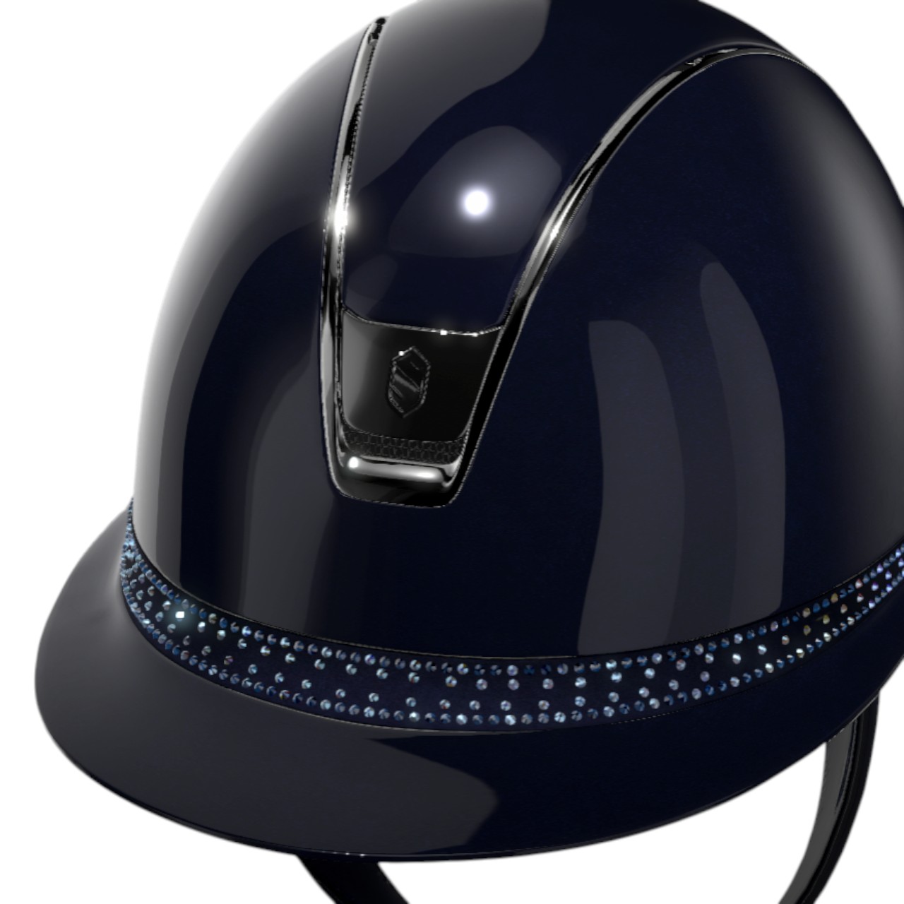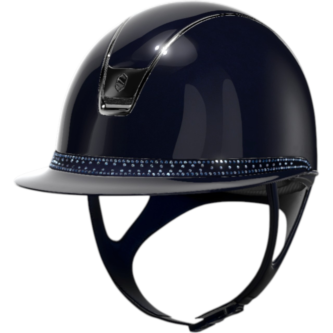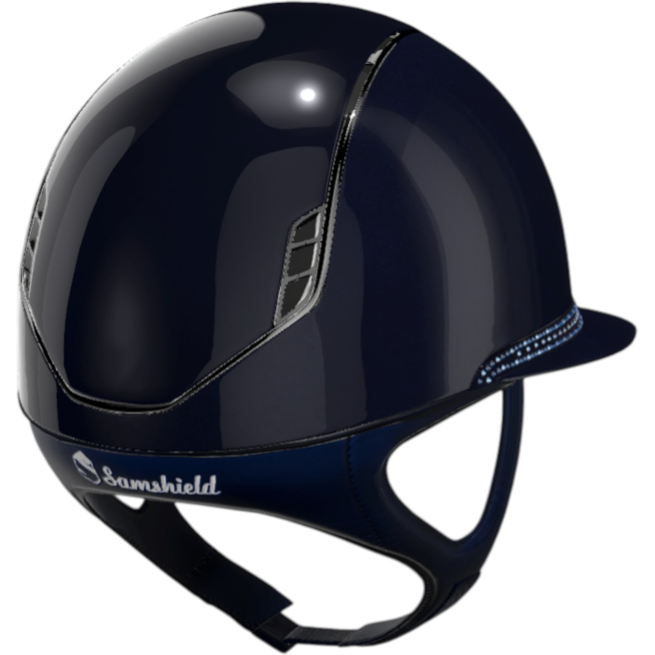 Reithelm Miss Shield 2.0 Shadowglossy Blue | Tiara Blue Holographic | Chrome Black von Samshield vereint maximale Sicherheit mit atemberaubendem Design. Erlebe den Komfort und die Sicherheit, die dich bei jedem Ritt begleiten, während du zugleich mit einem eleganten Look beeindruckst.