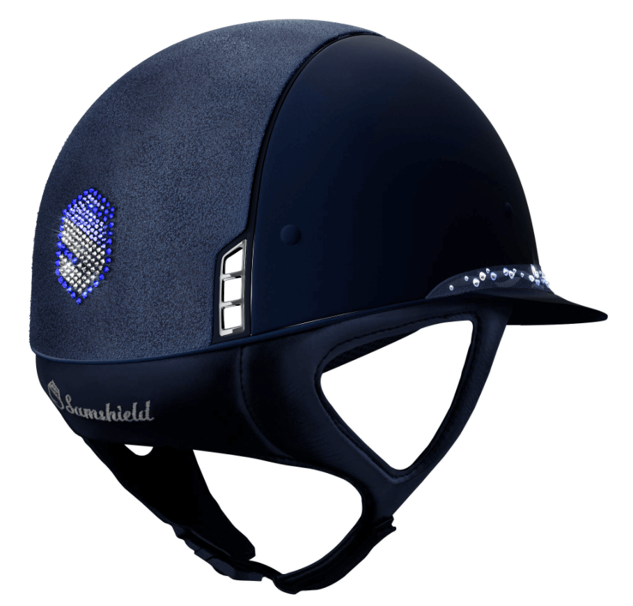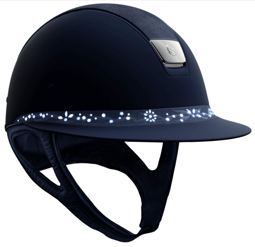 Reithelm Miss Shield Shadowmatt Flower Crystal Jewelry Blue von Samshield bietet dir eine perfekte Kombination aus Stil und Sicherheit. Lass dich von der atemberaubenden Optik mit funkelnden Swarovski®-Kristallen verzaubern und erlebe gleichzeitig höchsten Tragekomfort und Schutz bei jedem Ritt.