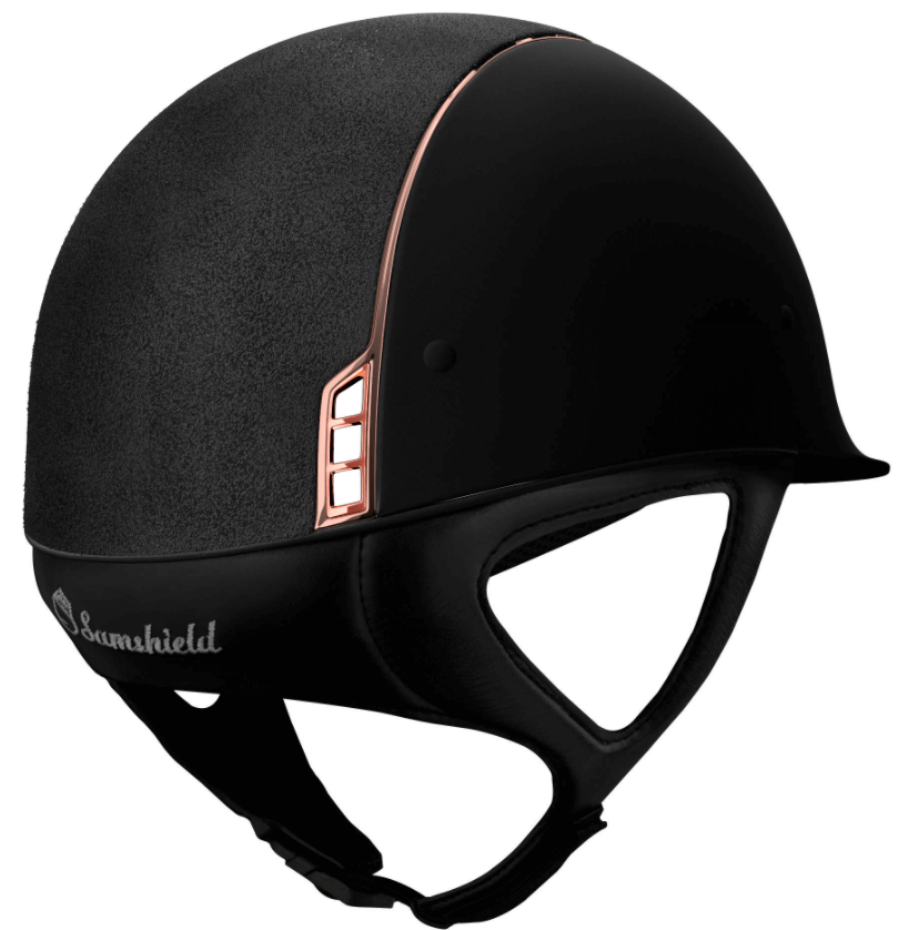 Reithelm Shadowmatt Alcantara Black Roségold Polycarbonat von Samshield verbindet stilvolle Eleganz mit modernster Sicherheitstechnologie. Perfekt für anspruchsvolle Reiter, die Wert auf Ästhetik und Schutz legen, bietet dieser Helm unvergleichlichen Komfort und eine herausragende Belüftung.