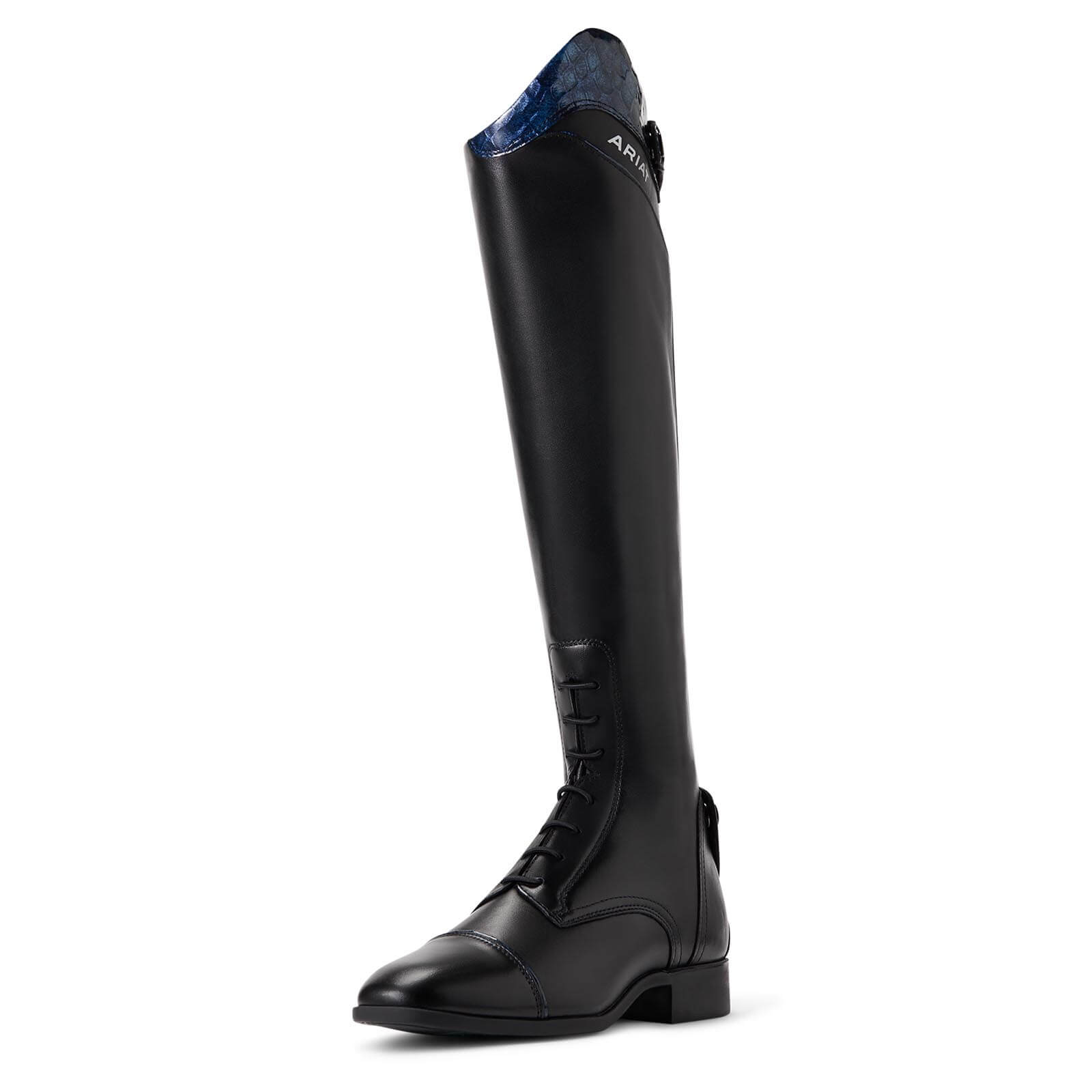 Die Reitstiefel Palisade Ellipse Lederreitstiefel bestechen durch ihr elegantes Design und die Verwendung von hochwertigem Vollnarbenleder. Der auffällige Kobra-Print am Schaft verleiht ihnen eine exotische Note, die im Reitstall für Aufsehen sorgt. Die Kombination aus schwarzem Leder und blauen Akzenten macht sie zu einem echten Hingucker, ohne aufdringlich zu wirken.