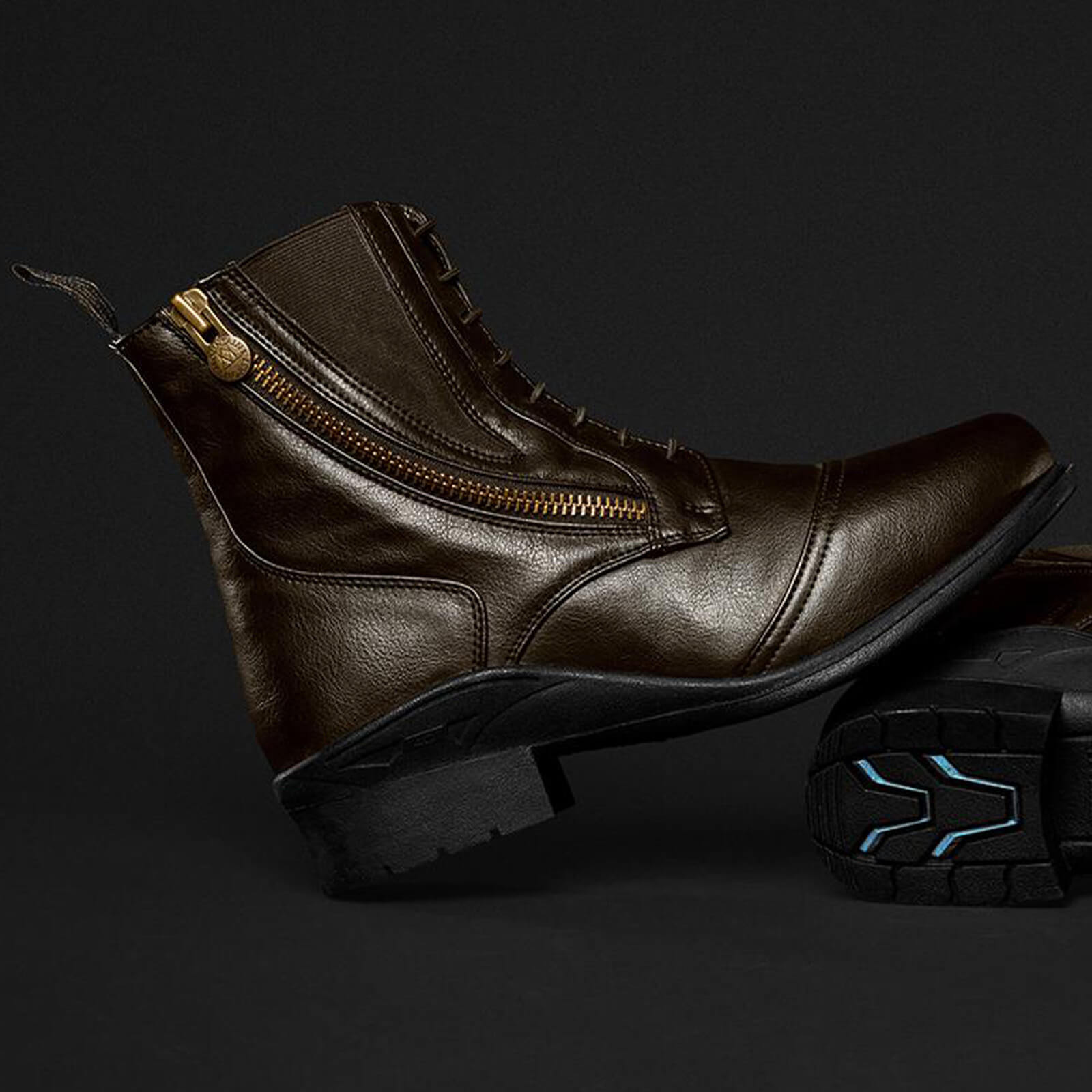Die Stiefelette besticht durch ihr edles Aussehen in klassischem Schwarz oder Braun, das sich nahtlos in jede Reitgarderobe einfügt. Das vegane Leder sorgt nicht nur für einen luxuriösen Look, sondern ist auch pflegeleicht und langlebig. Der seitliche YKK®-Spiralreißverschluss bietet dir einen schnellen und mühelosen Einstieg, auch wenn es mal hektisch zugeht.