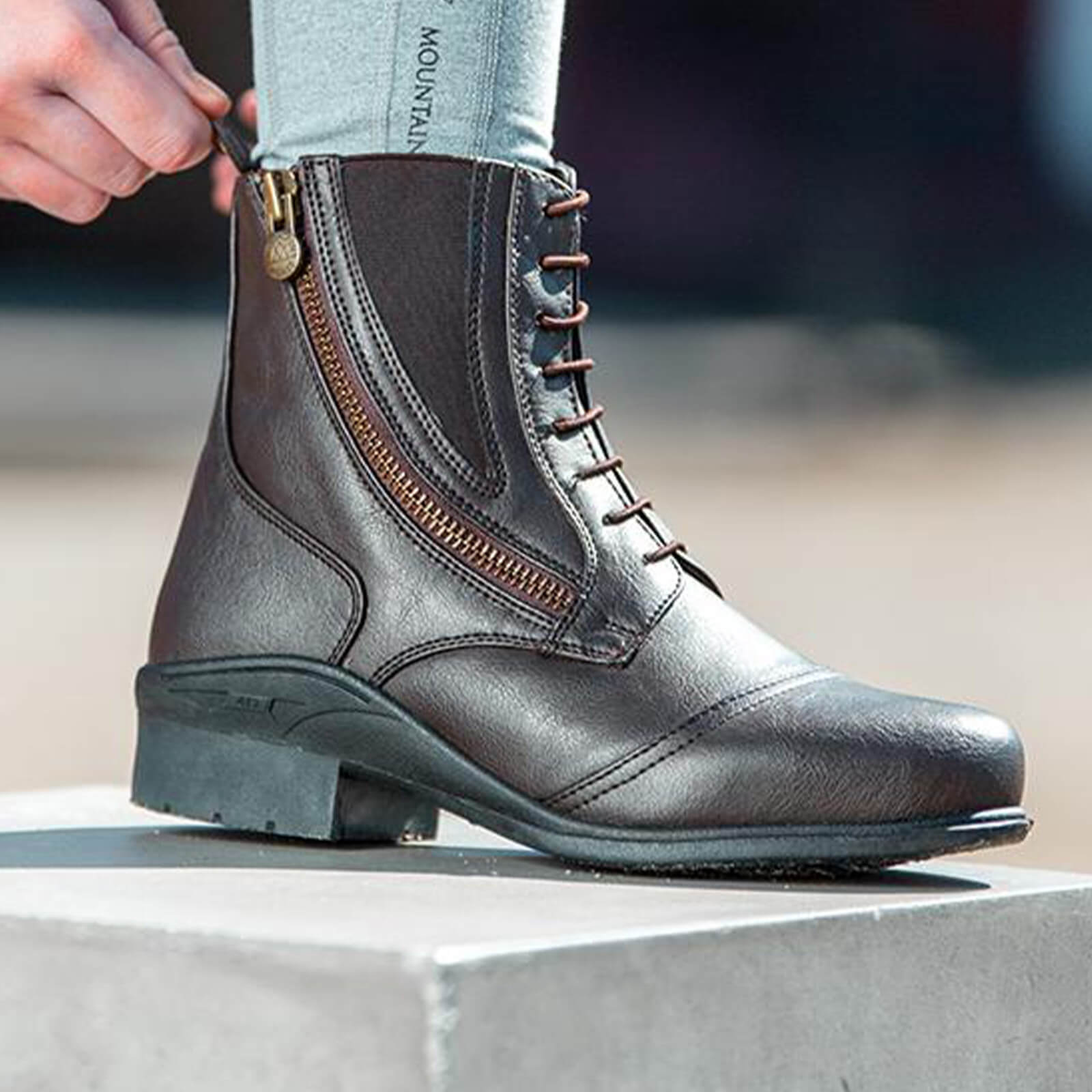 Stiefelette Veganza Side Zip Paddock von Mountain Horse verbindet nachhaltigen Stil mit modernem Komfort. Genieße die perfekte Kombination aus veganem Leder und durchdachter Technologie, die dir nicht nur ein gutes Gefühl, sondern auch optimale Unterstützung beim Reiten bietet.