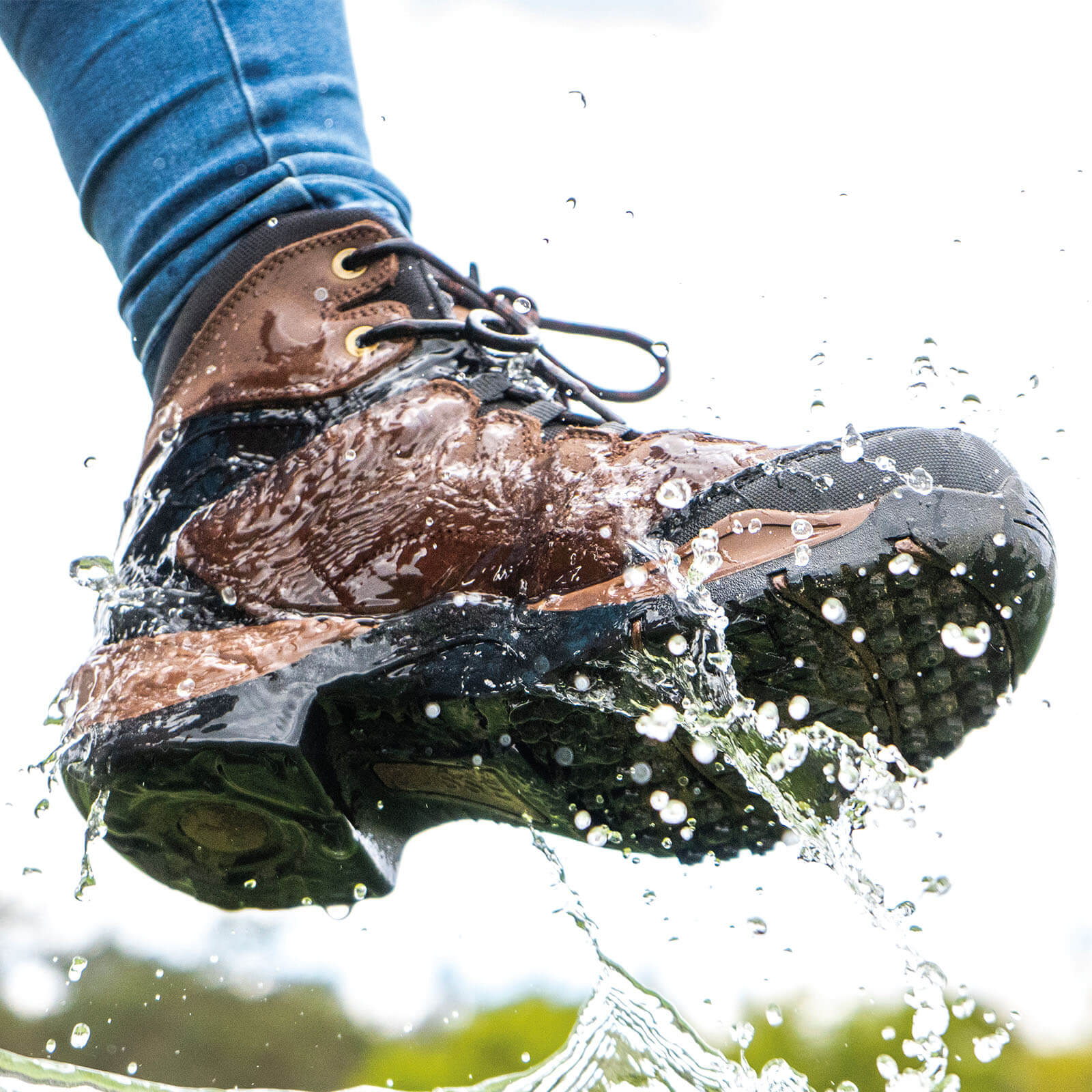 Dank der hochwertigen Membran bleibt der Schuh atmungsaktiv und wasserdicht bis zur Schnürung, was dir auch bei nassem Wetter trockene Füße garantiert. Die abgerundete Profilsohle mit festem Absatz und Durchrutsch-Stopp bietet dir im Steigbügel hervorragende Sicherheit und Stabilität. Eine herausnehmbare Innensohle sorgt zudem für extra Komfort und individuelle Anpassung.
